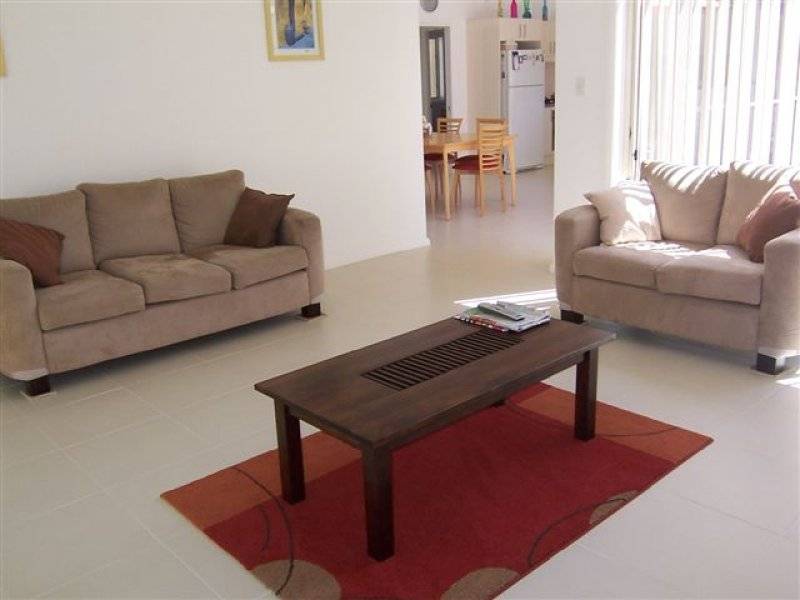 The two separate living areas are joined by a central kitchen and dining room which opens onto the patio. All four bedrooms accommodate queen sized beds and the master bedroom has a generous sized ensuite.