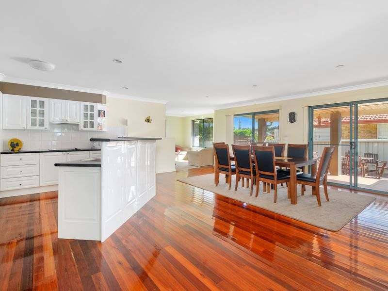 An imposing modern family residence of more than generous proportions that exudes both character and charm. Beautifully located just 3-4 minutes' to Beach, Lake or Shopping Centre and hilltop position providing wonderful North aspect and Ocean views. Features wide foyer, segregated main bedroom with walk-in wardrobe and ensuite, spa to main bathroom, massive separate lounge room, Open plan living incorporating dining and family area, stone bench and high gloss kitchen with high top island servery plus adjoining reading/TV room and spacious under roof alfresco dining. Double garage plus high roof gated car port. For further details or to inspect this immaculately presented home contact Keith Cramp on (02) 6585 5777. Council Rates: $2,440 pa.