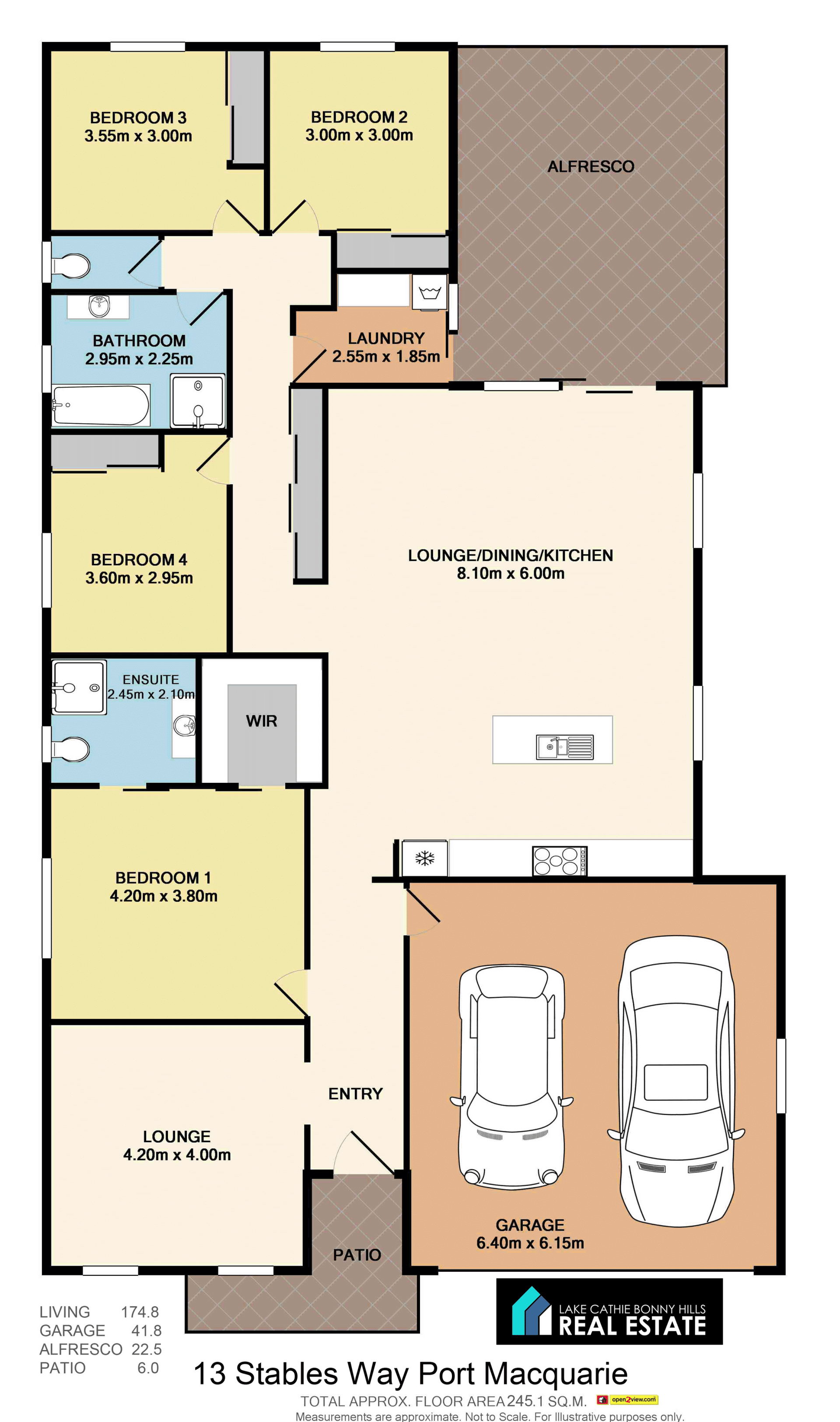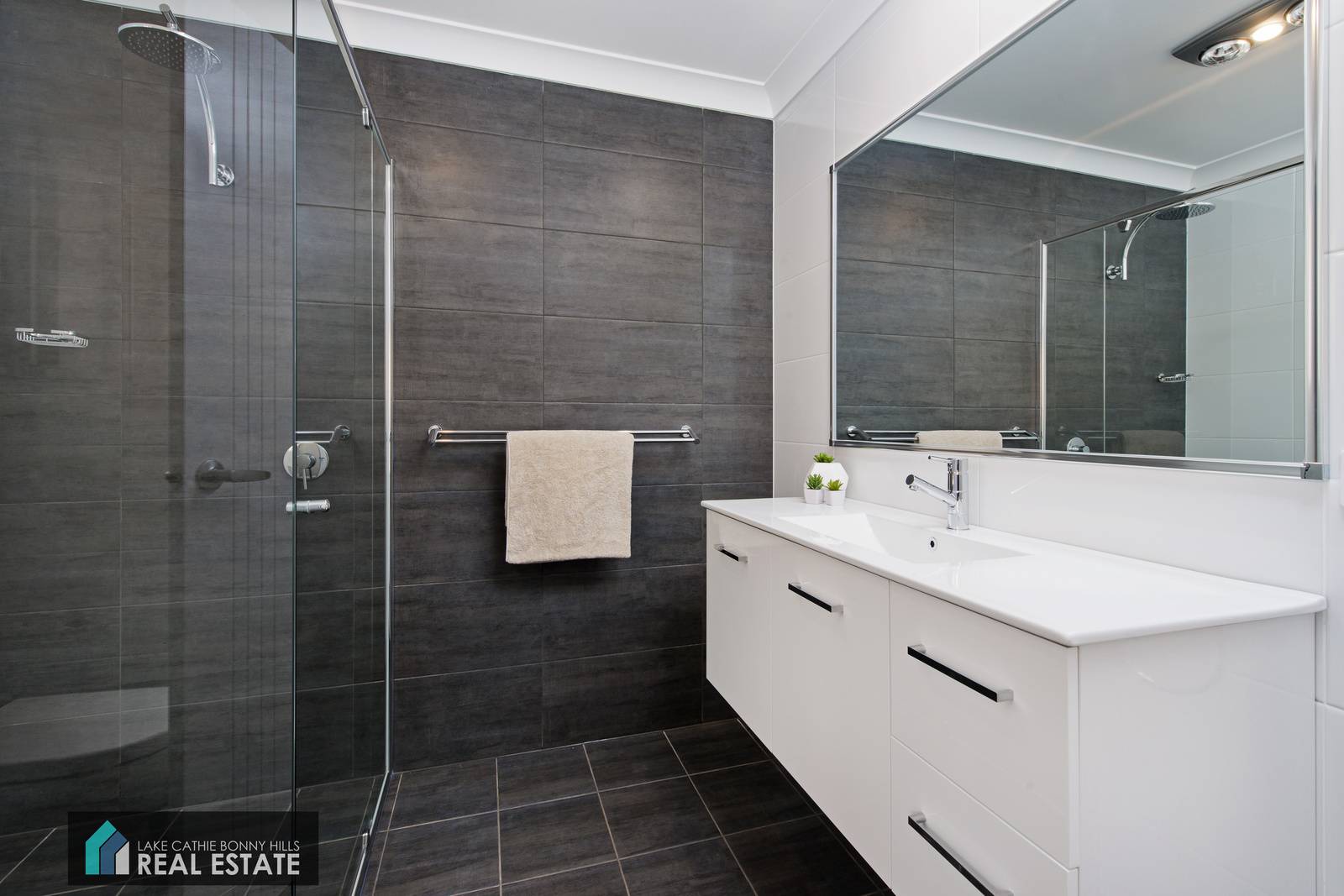 This master built home by long standing local family Builders "Seaside Building" has just been completed. The usual top shelf inclusions match the familiar family friendly design incorporating clasic ingredient with modern trends. Features include segregated master bedroom with en-suite and walk-in wardrobe, separate lounge or media room (4 x 4.2m), open plan family living room and dining and ceasastone kitchen with island sit to bench. High range inclusions of stainless steel dishwasher, range hood, electric cook top and wall oven. Ceiling fans to throughout all rooms, air-conditioned living area, ducted vacuum system, great linen cupboard and water to refrigerator alcove. Carpeted bedrooms and media room with flowing tiles throughout remainder of living areas and passageways. 340lt Solar lo-line hot water system with electric booster, remote panel lift door to garage and 3,000 litre water tank with pump and water switch to town supply. Complete with boundary fences, turf, paths and exposed aggregrate finish driveway, clothesline and concrete paths, external yard flood light, front garden plus brick letter box. NBN and phone ready.  A complete package. Estimated Council rates $2,600 pa.