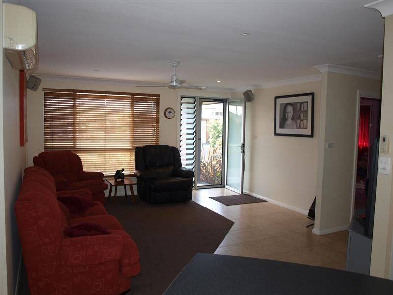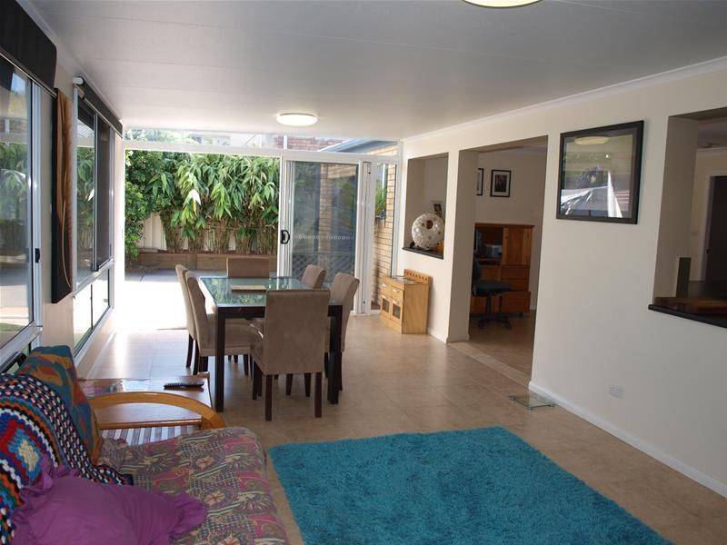 Beautifully positioned less than 500 meters to Beach and Shopping Centre or about 700 meters to the Lake. Modern 4 bedroom home with ensuite, open plan living, dining and kitchen plus fabulous sunny rumpus/family room. Air-conditioning, ceiling fans, dishwasher, rangehood, new window shutters and blinds as well as 18 mth old oven & cooktop. Tiled floor living and carpeted bedrooms. Attached garage with drive through facility to additional carport and hobby room with shower & toilet. Level fenced yard with extra garden shed. Sorry no Pets allowed. Available now.
