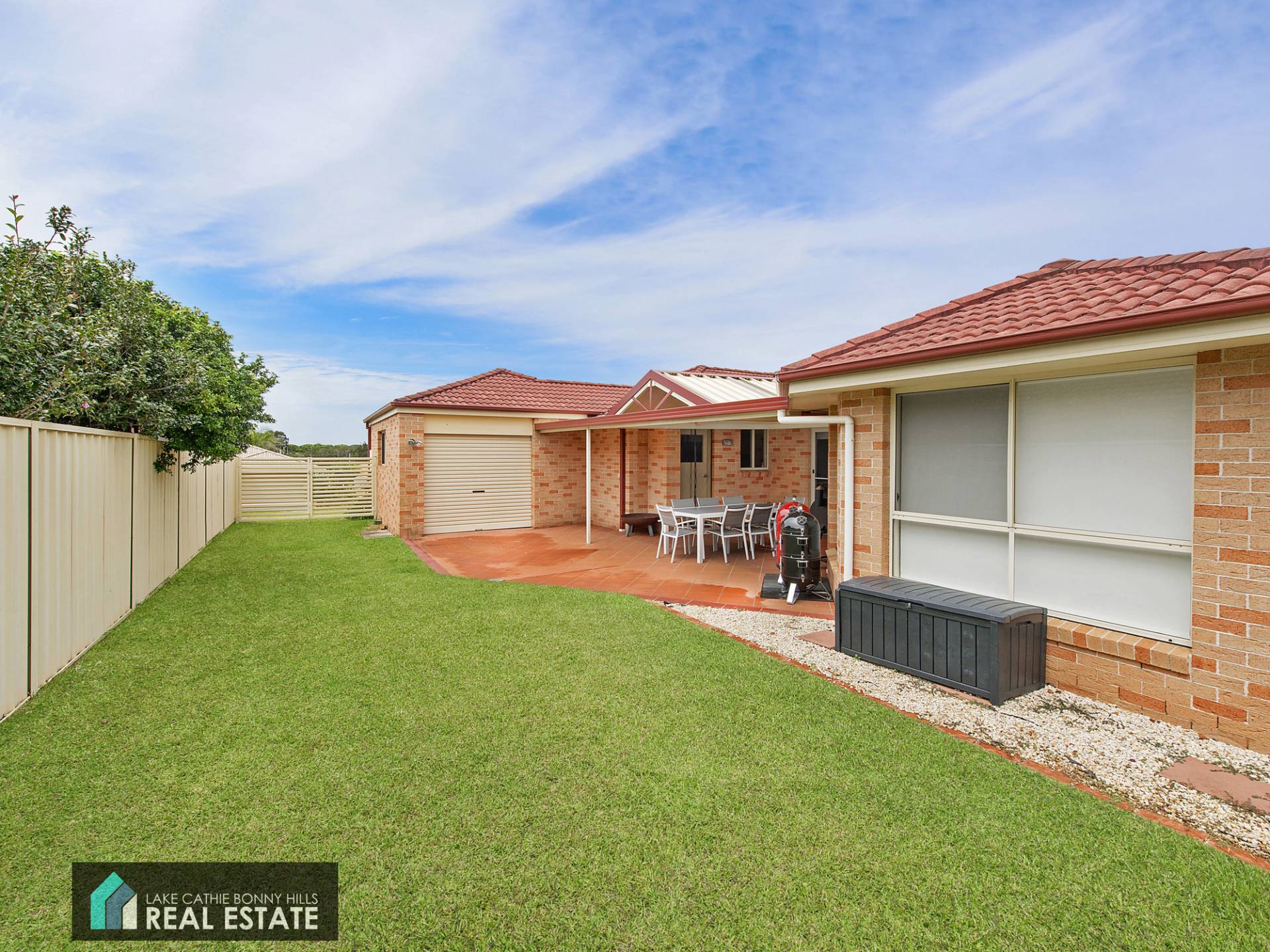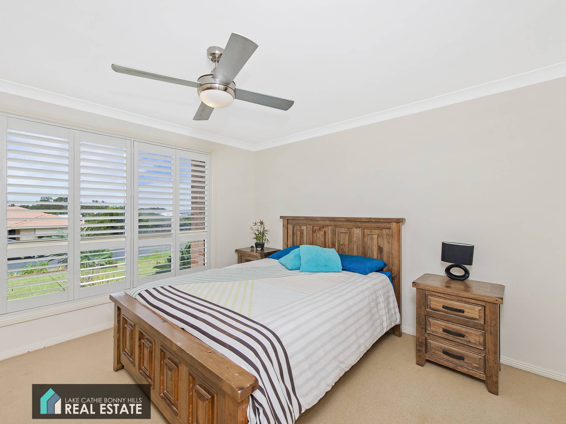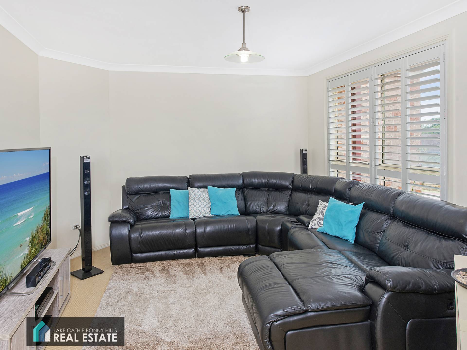 Beautifully presented and perfectly located home to suit the family of all sizes. Great floor plan providing three separate living areas plus a superb covered (approx 6x4m) alfresco dining & entertaining flowing from two of the living areas. High set position on elevated knob within the quiet cul-de-sac offering wonderful a north east aspect capturing the lovely summer breezes and good winter sun. Residence features segregated main bedroom suite with walk-in wardrobe and en-suite, ceiling fan and quality plantation shutters. Separate lounge is nicely positioned at the front of the home just off the entry foyer with similar window shutters and carpeted flooring and ceiling fan, while a separate dining room with floating floor and plantation shutters has the convenience of being directly adjacent to the central kitchen and open plan family living area which features raked ceiling and ideally links to the rumpus room and both flow effortlessly to the alfresco dining and outdoor entertaining. The three minor double bedrooms are split by a wonderful three unit bathroom complex comprising shower and bath room, vanity room and seperate WC providing good separation for family and or guests. All bedrooms have built-in wardrobes and two have ceiling fans and a good sized linen cupboard is located in the bedrooms wing. The well appointed kitchen includes electric wall oven and bench hot plates, range hood, dishwasher and good sized panrty as well as breakfast bar bench for those quick on the run meals or snacks. Garage has electric remote panel lift door and one side has the bonus of drive through with rear roller door and has internal access. The property is fully fenced with colorbond fencing and gates including the much desired side access and the 4 x 3 m (approx) colorbond garden shed accommodates good outside storage of garden tools etc. This property is extremely well located within easy walking distance to the Beach and the walkway at the end of the cul-de-sac provides a level walk to the Lake Cathie Woolworth's Shopping Centre. Great location and a great property. Rates approx. $2,700 pa.