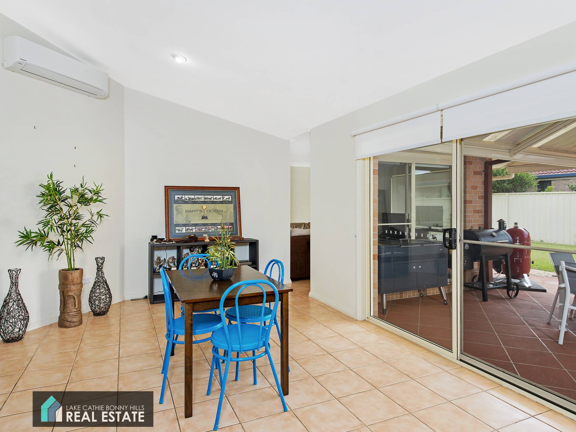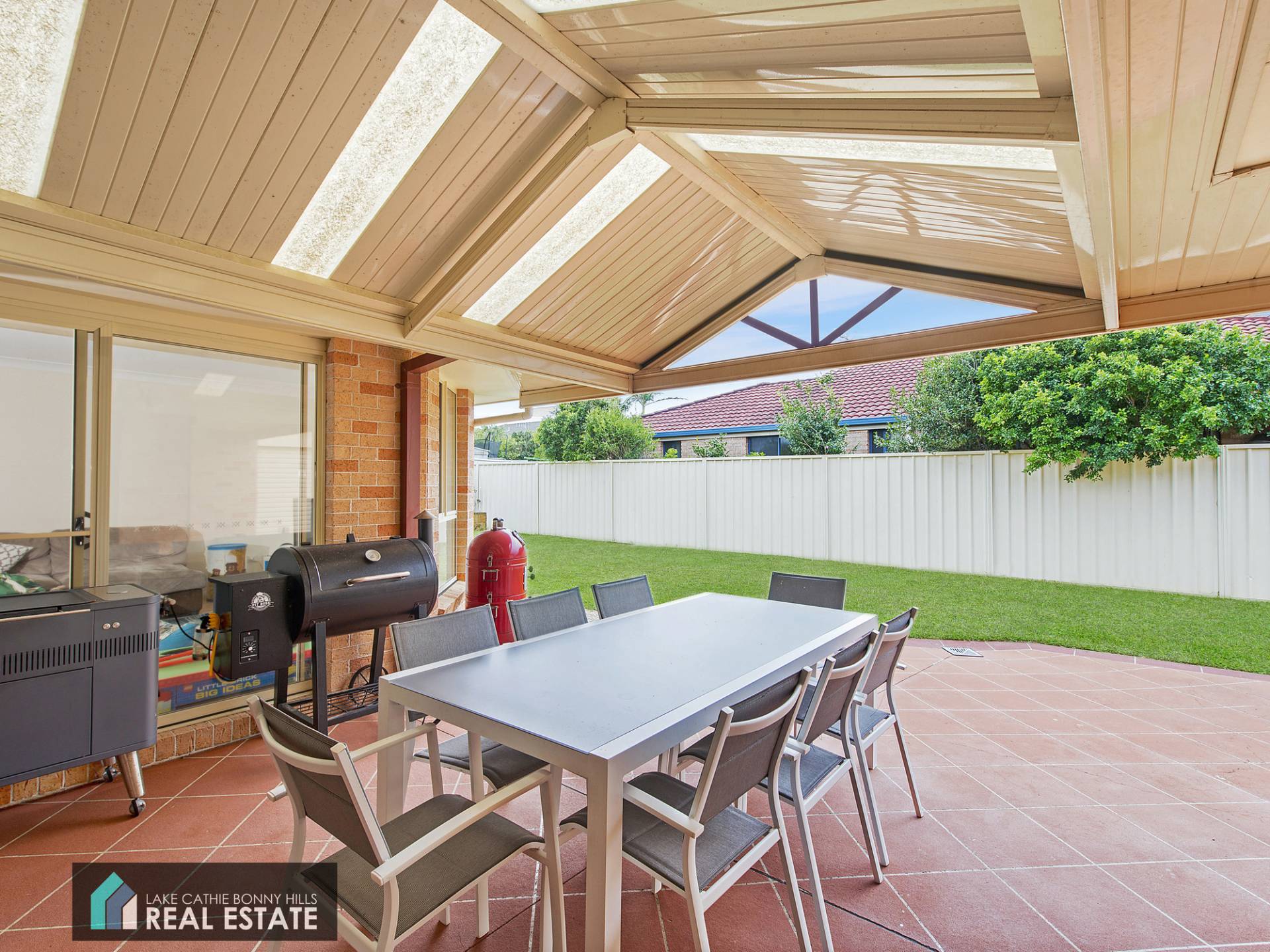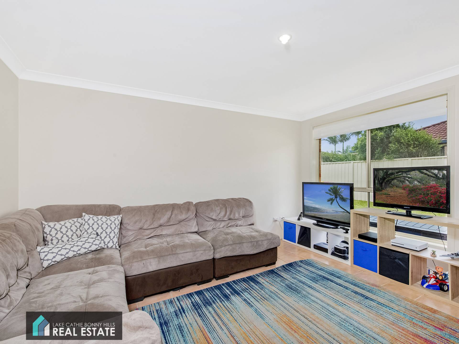 Beautifully presented and perfectly located home to suit the family of all sizes. Great floor plan providing three separate living areas plus a superb covered (approx 6x4m) alfresco dining & entertaining flowing from two of the living areas. High set position on elevated knob within the quiet cul-de-sac offering wonderful a north east aspect capturing the lovely summer breezes and good winter sun. Residence features segregated main bedroom suite with walk-in wardrobe and en-suite, ceiling fan and quality plantation shutters. Separate lounge is nicely positioned at the front of the home just off the entry foyer with similar window shutters and carpeted flooring and ceiling fan, while a separate dining room with floating floor and plantation shutters has the convenience of being directly adjacent to the central kitchen and open plan family living area which features raked ceiling and ideally links to the rumpus room and both flow effortlessly to the alfresco dining and outdoor entertaining. The three minor double bedrooms are split by a wonderful three unit bathroom complex comprising shower and bath room, vanity room and seperate WC providing good separation for family and or guests. All bedrooms have built-in wardrobes and two have ceiling fans and a good sized linen cupboard is located in the bedrooms wing. The well appointed kitchen includes electric wall oven and bench hot plates, range hood, dishwasher and good sized panrty as well as breakfast bar bench for those quick on the run meals or snacks. Garage has electric remote panel lift door and one side has the bonus of drive through with rear roller door and has internal access. The property is fully fenced with colorbond fencing and gates including the much desired side access and the 4 x 3 m (approx) colorbond garden shed accommodates good outside storage of garden tools etc. This property is extremely well located within easy walking distance to the Beach and the walkway at the end of the cul-de-sac provides a level walk to the Lake Cathie Woolworth's Shopping Centre. Great location and a great property. Rates approx. $2,700 pa.