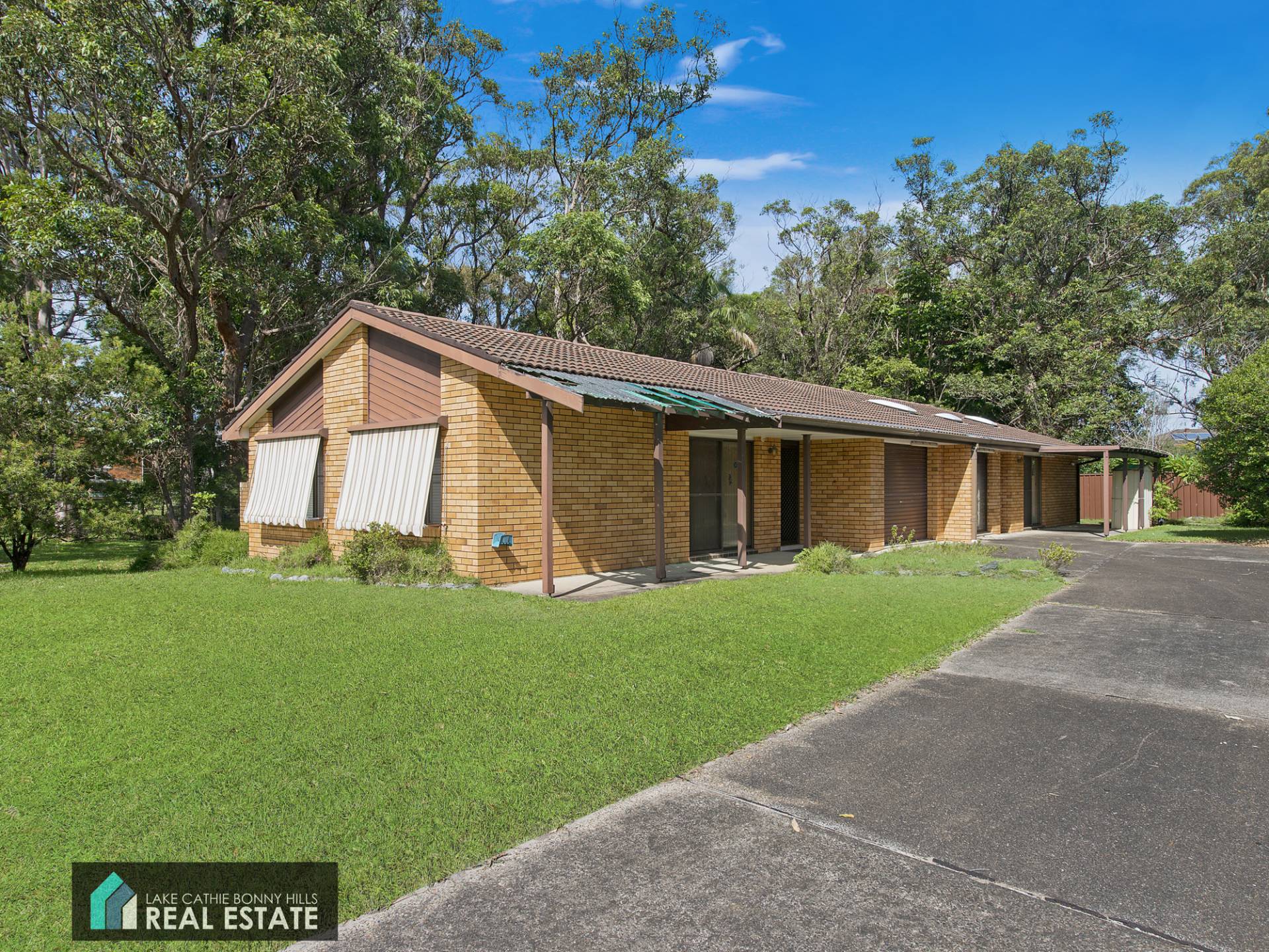 Rare opportunity to secure two Villa dwellings on one parcel of land and Title. Outstanding location only 200-300 metres from the Lake and Beach, similar to neighbourhood shops and adjacent to Lake Cathie Bowling Club. Brick veneer dwellings with tiled roof and both with flowing tiled flooring throughout and ducted air-conditioning. Back Villa is larger in size with bigger kitchen and living room as well as second living area created from original garage which could easily be converted back. Front unit has single lock-up remote door garage with internal access. Each villa has own courtyard. Built-in wardrobes to both bedrooms in each dwelling, each has several sky lights for extra light and both have separate WC's. An outstanding investment for location and great opportunity to live in one and rent the other or excellent personal or superannuation investment. Envisaged rental $350-390 p/wk each. Council Rates (approx) $2,700 pa. Viewings by appointment only.