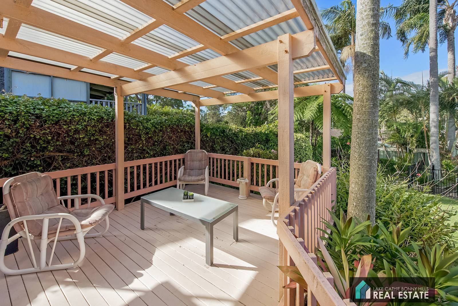 The stand out feature of the home is the private entertaining area, featuring an oversized elevated entertaining deck that encompasses tranquil sea breezes, and overlooks the resort style in-ground swimming pool, surrounded by palm trees, further enhancing the lush tropical garden setting. Stay cool in summer and enjoy a cold beverage seated around the in-built swimming pool table with friends, whilst your mornings can be spent soaking up the sunshine and enjoying your morning coffee on one of the two separate deck areas.