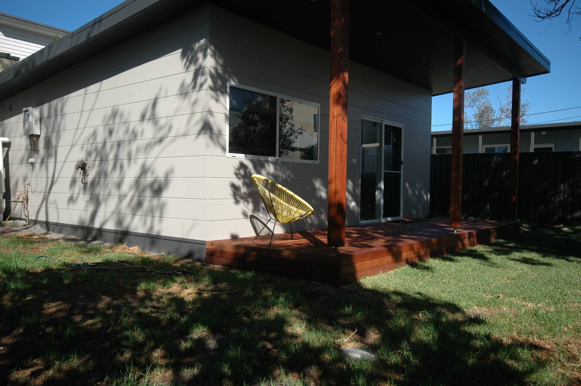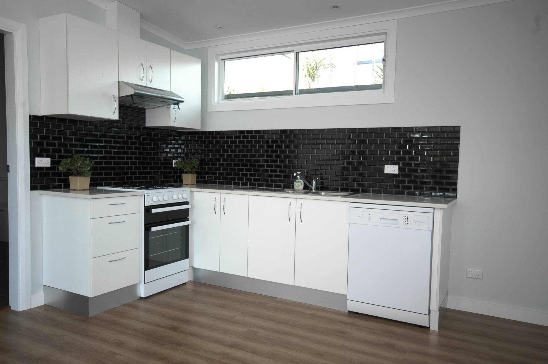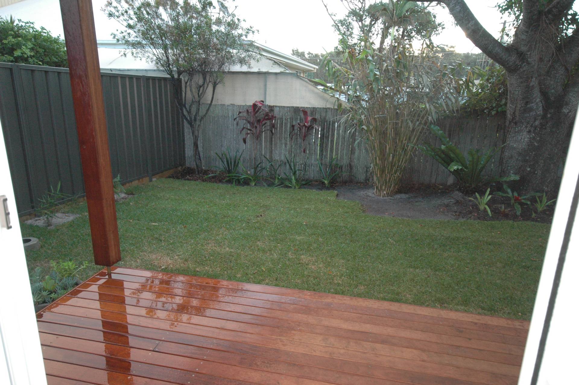 Just like new. Only twelve months old delightful free standing dual occupancy unit with own private courtyard including lawn and gardens. Beautiful timber look hard flooring throughout with tiled bathroom including floor to ceiling tiling. One bedroom with double built-in wardrobes and ceiling fan, kitchen features features all as new appliances of range hood, electric stove, dishwasher and stone benches and has double bowl sink. Ceiling fan to generous sized  living room which flows to covered front deck. Gas hot water system. Off street parking. Fabulous private setting, metres walk to beach and Lake and few minutes level walk to Bowling Club. Sorry no pets. Available 14th July.