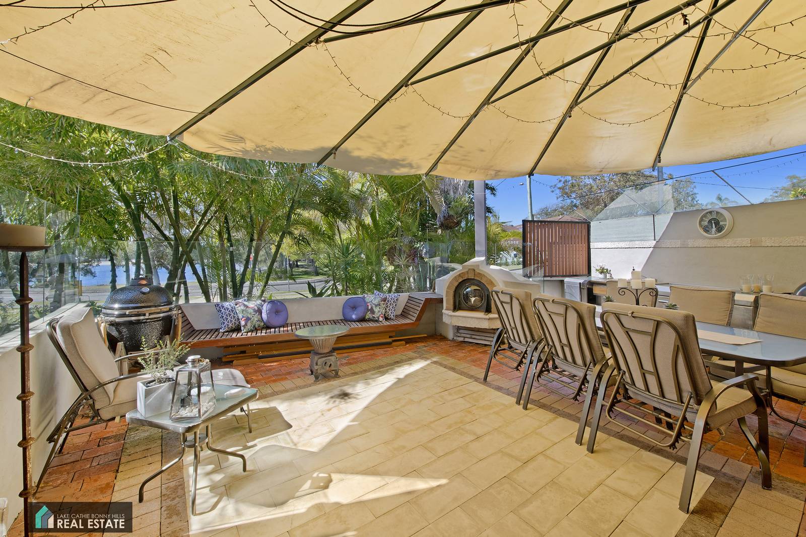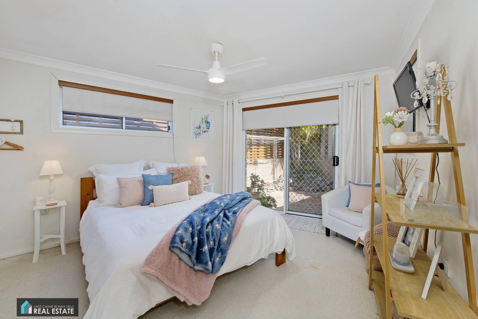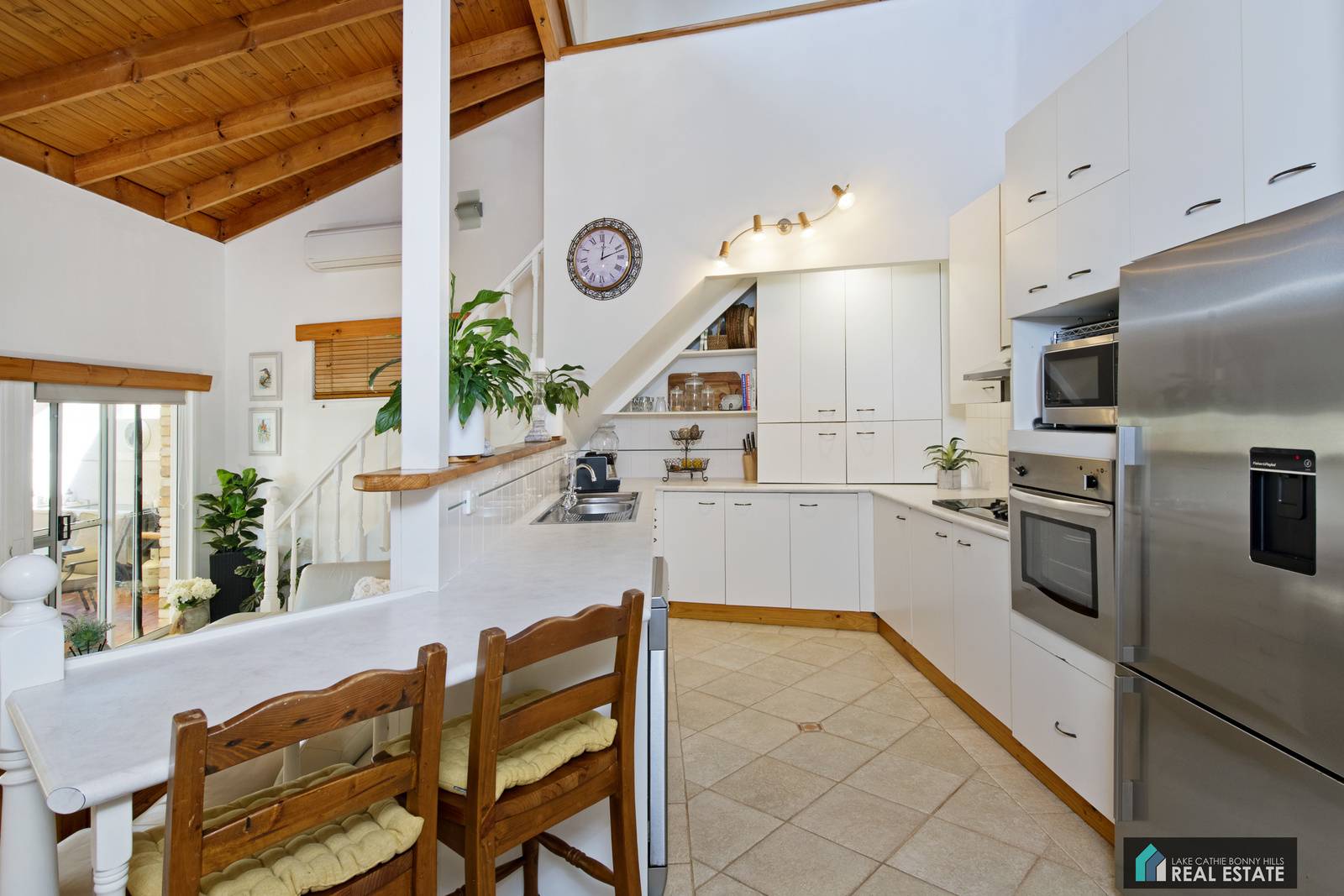 Brilliantly positioned Lakeside this contemporary designed Townhouse is ideal for the professional couple who love to entertain. The almost magical courtyard transfers an immediate relaxed aura and boasts a feature built-in Pizza oven, outdoor kitchen unit, built-in bench seating and has glass topped walls for weather protection but, allowing views of the lake and is covered by a weatherproof "Seashell" retractable awning. The split between the living room and the kitchen and dining room ads wonderful character while the timber Cathedral ceilings provide the warmth and charm. Separate media room provides that extra space and separation for TV or music or just chilling out. Main bedroom has walk-in wardrobe and with second bedroom are positioned on the ground floor at the back of the home providing good privacy and quiet. Third bedroom is located upstairs with adjoining mezzanine sitting room ideal for guests. Spa deck courtyard off main bedroom. All just a stroll across the road to the Lake for a paddle in the canoe or a spot of fishing and only short walk to the Beach. Woolworth's Shopping complex about two minutes drive or 5-10 minutes walk. Strata title property of two dwellings. Envisaged self managed. Estimated Strata fees $1,000-$1,200 pa. Estimated Council rates $2,600 pa.