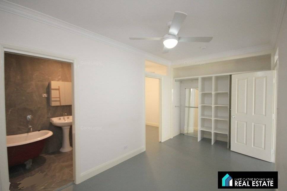 Like new One bedroom plus study courtyard home featuring stone kitchen bench tops, ceramic drop in kitchen tub, gas cook top stainless steel stove with electric oven. Ceiling fans, pantry plus computer nook, spacious 9 x 5 m (approx) covered deck for entertaining. Bedroom has buit-in wardrobe, study built-in cupboard and downlights throughout. External sensor lights for added convenience. Own yard for recreation. Great location within minutes to local neighbourhood shops and Rainbow Beach. Off street parking.  Sorry no pets. Available now.