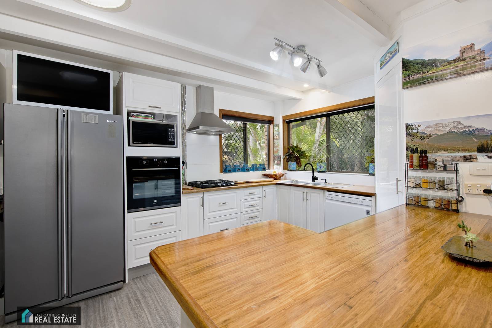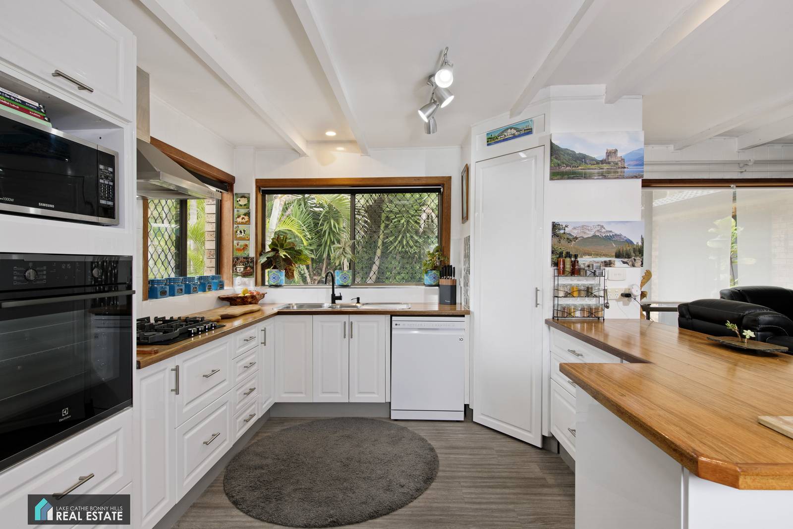 Featuring a fresh and stylish kitchen with dishwasher, gas cooking and natural timber bench tops adding to the charm of the home. With ample work and storage space and the added benefit of a butlers pantry with additional storage and bench space.
