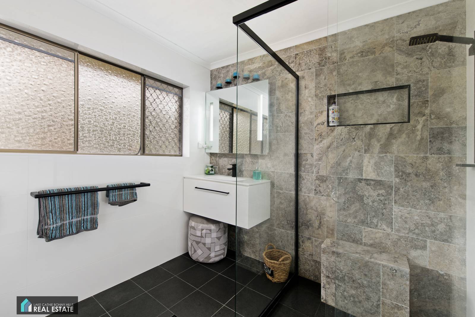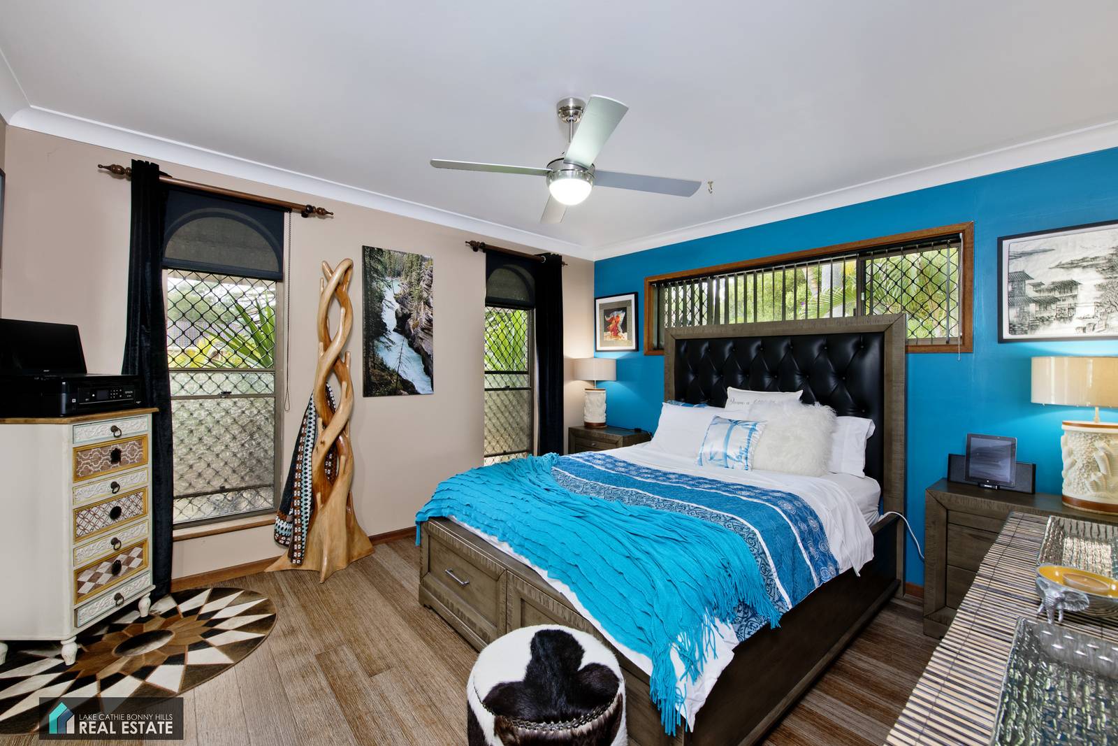 All bedrooms feature built-in-robes and ceiling fans with quality bamboo flooring. Step into the master bedroom, and slide back the oversized mirrored door to reveal a modern and cleverly concealed en-suite on one side, and large walk-in-robe on the other.