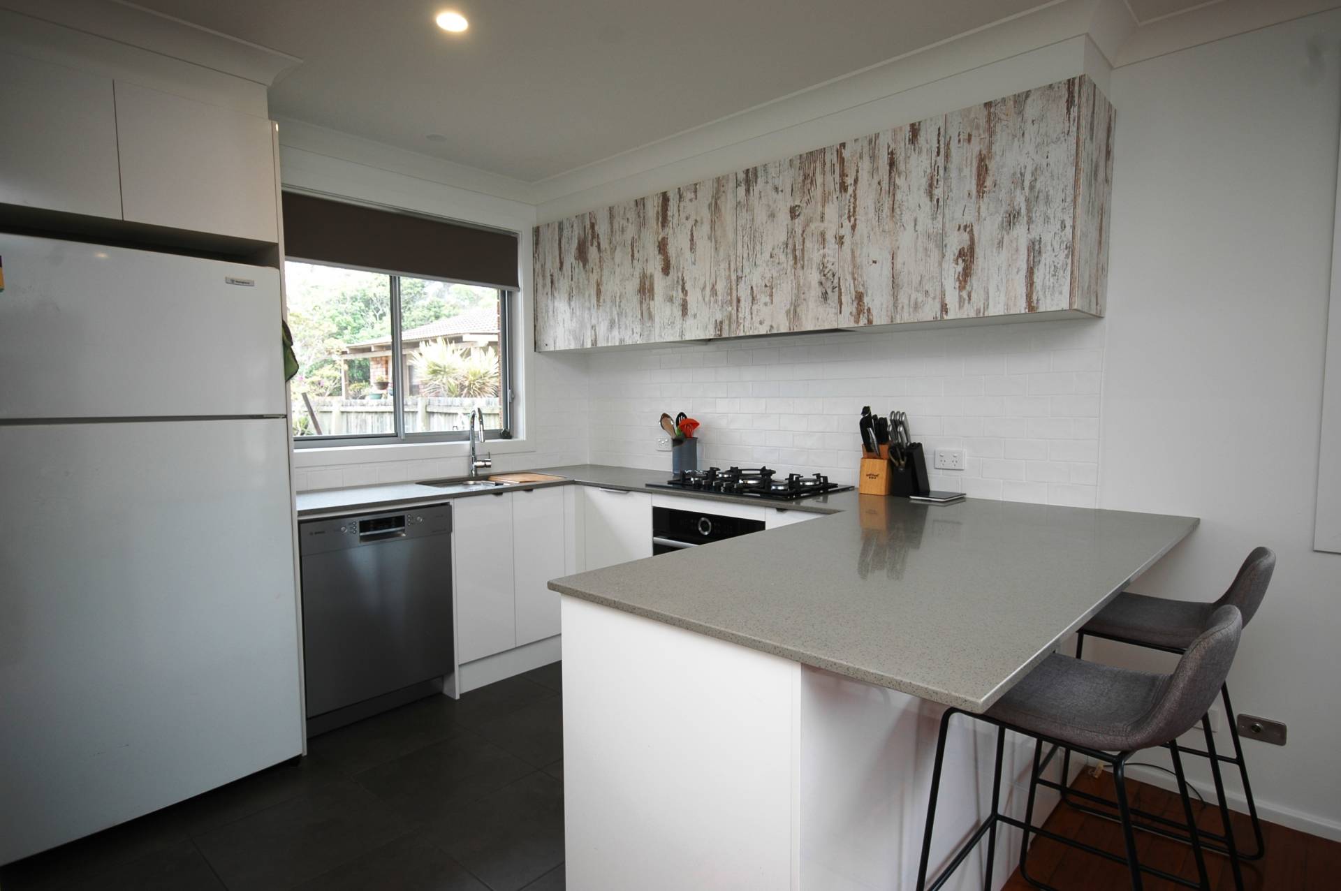 Wonderful location approx. 300 metres to Beach and also easy walk to Lake, neighbourhood shops and Lake Cathie Bowling Club. Recently renovated with all new windows throughout, new blinds, freshly painted, and features new kitchen with stone benches and top quality appliances including gas 5 burner bench cook top, electric oven, stainless steel range hood and dishwasher. Special feature of trendy butlers pantry/laundry. Living room flows via new double sliding doors to large front deck of approx. 6 x 2 m and the large covered alfresco deck has dual access. Comfort is provided with ceiling fans to bedrooms and living room, bayonet gas outlet plus split air-conditioner. large four door wardrobes to both bedrooms, under cover access to garage which has electric remote door and bonus of polished hardwood floors throughout except for the tiled bathroom and kitchen.  Great external storage in 5x3m colorbond garden shed. Sorry no Pets. Available (approx) 9th April.