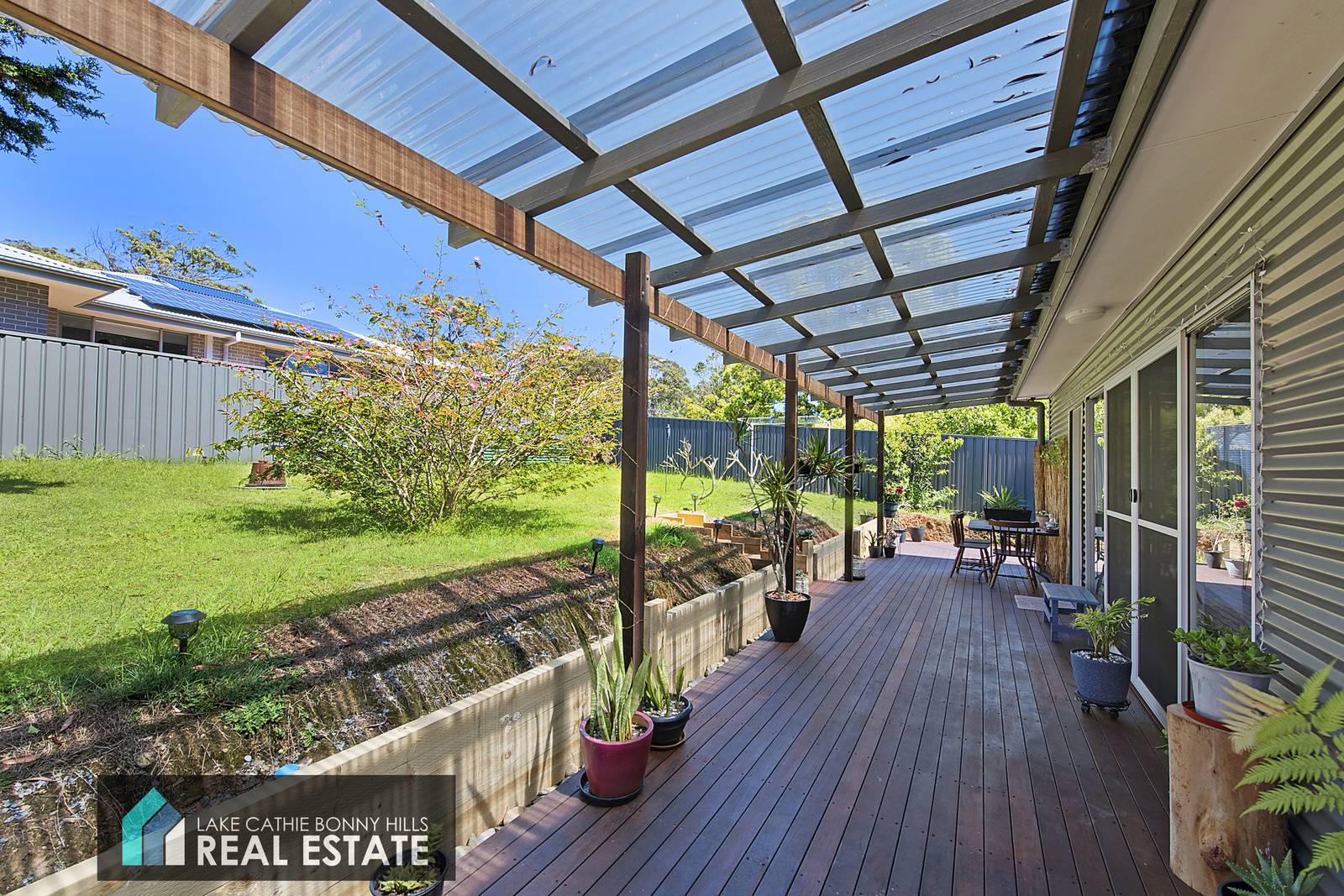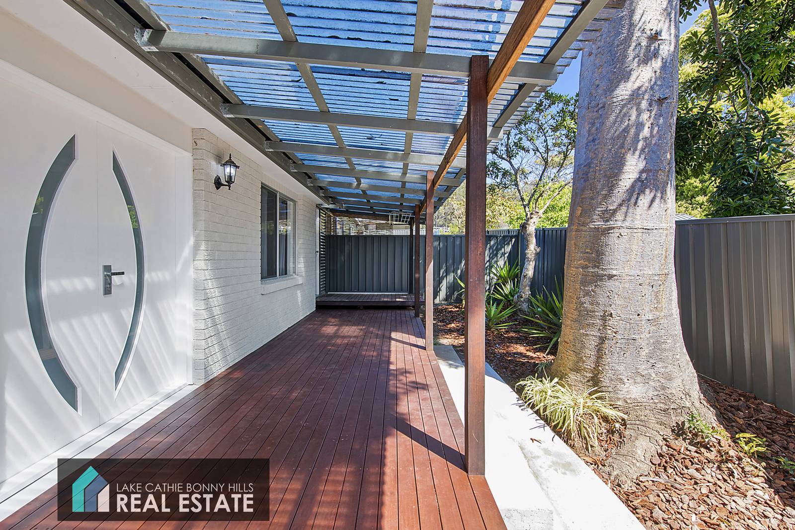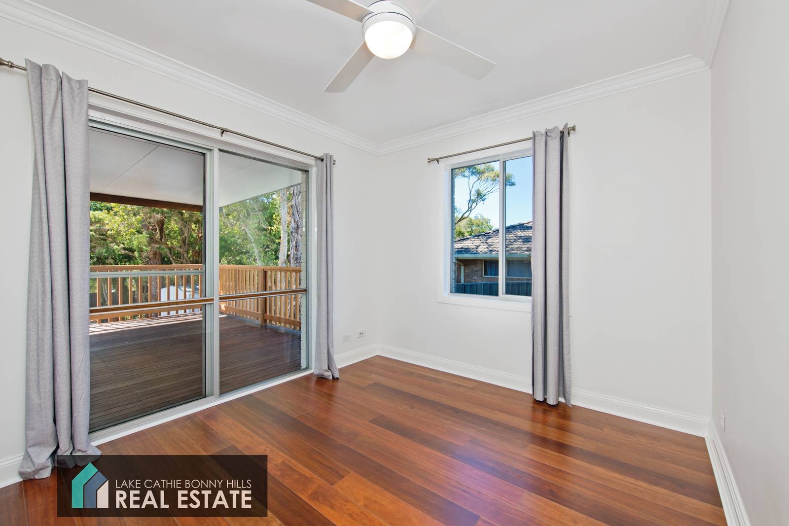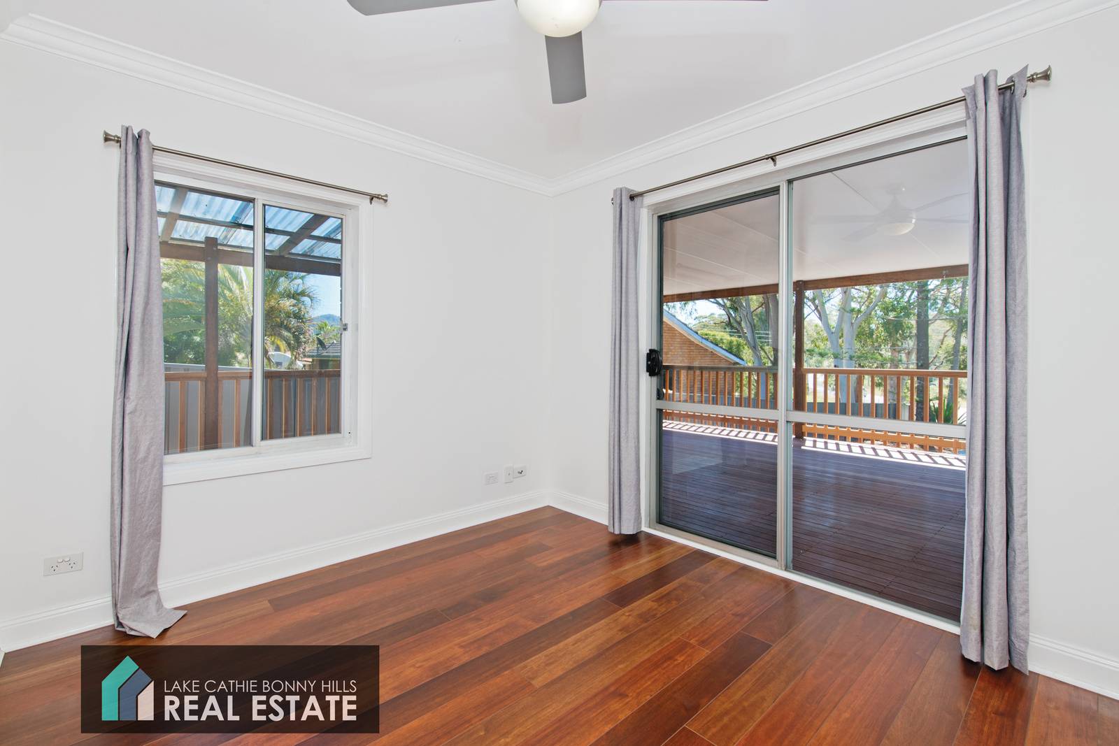Superb location only minutes walk from Rainbow Beach, (Bonny Hills Surf Club) yet nestled in a lovely private setting on 1324m2 land enjoying bush like environment. Totally renovated Family residence plus room for the in-laws or guests in semi-separate self contained accommodation wing comprising large bedroom and separate study, spacious open plan living room with dual sliding doors to second covered deck and delightful feature timber kitchenette with granite bench tops, gas stove and walk-in pantry/storage. Main residence features brand new floating timber floors throughout, superb central open plan kitchen highlighting the country styling through timber cabinets, granite bench tops, 900mm stainless steel gas stove and canopy plus chef inspired  walk-in pantry and blackboard note wall. All three bedrooms have built-in wardrobes with ceiling fans and two have direct sliding door access to the outstanding wrap around covered alfresco dining and entertaining deck of approx. 45m2. The moment you step onto this property you know that something different is on offering. The versatility of the dwelling is so diverse and interesting through the segregated self contained accommodation making the property ideal for regular guests, mature family members, teenager retreat or maybe someone working from home as there is separate access entry to this suite. Property offers tandem garage plus large garden shed. The sizable unused area of the block provides room for a pool, parking for extra vehicles, boat and/or  caravan etc., and additional garaging if desired.  Other location benefits include within few minutes walk to Bonny Hills Tavern, Garden Centre Cafe, and Bonny Hills Corner store with Bonny Hills local shops minutes drive away and Lake Cathie Woolworths complex about 6 minutes drive. Plus only 20 minutes drive to Port Macquarie.