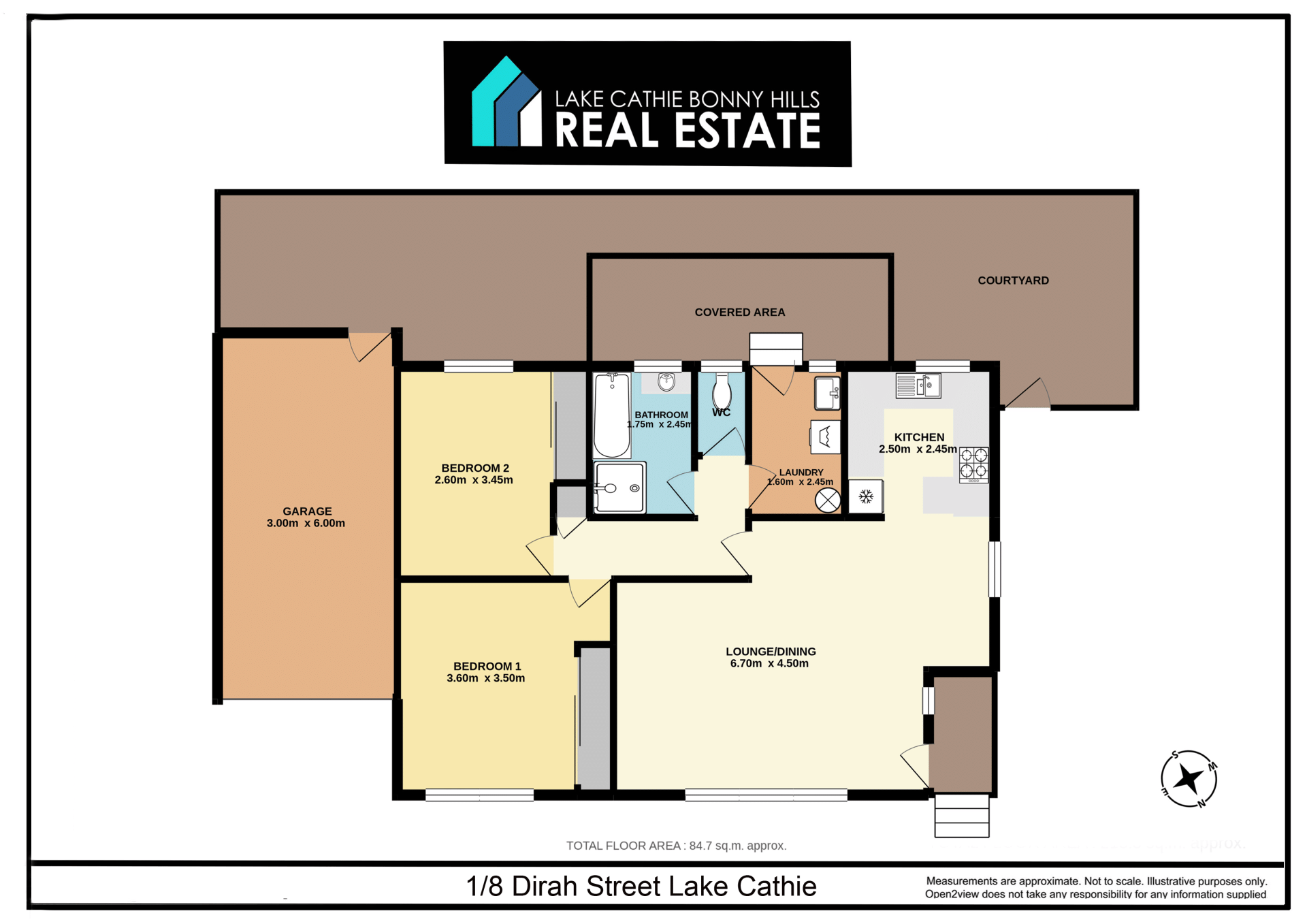 This charming villa features kitchen, dining and living area, two generous bedrooms both with built-in-wardrobes, bathroom and separate w/c with a large laundry, plus a single car remote control garage.