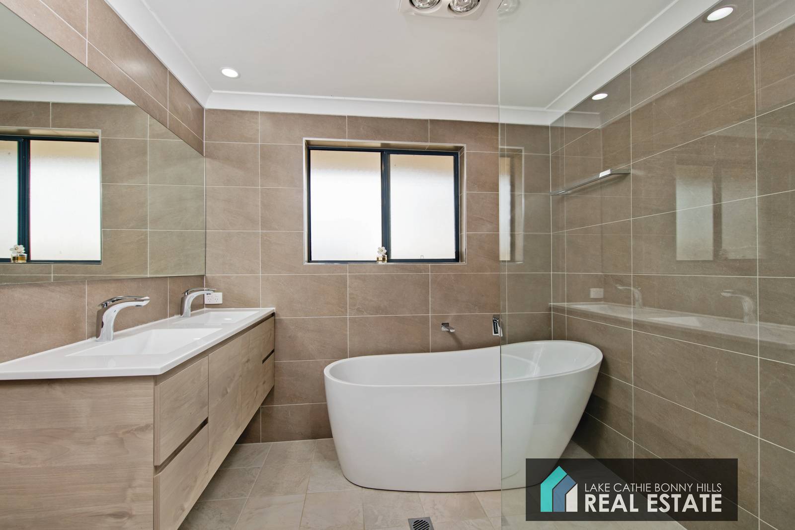 The modern bathrooms feature floor to ceiling wall tiles, luxury freestanding bath and the convenience of a third toilet located in the stylish laundry.