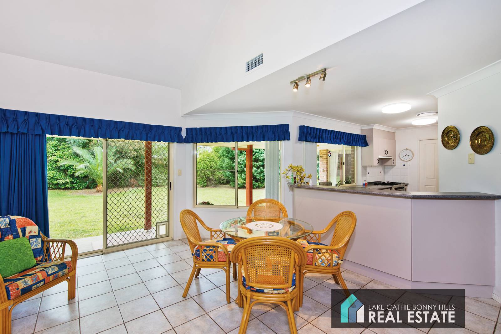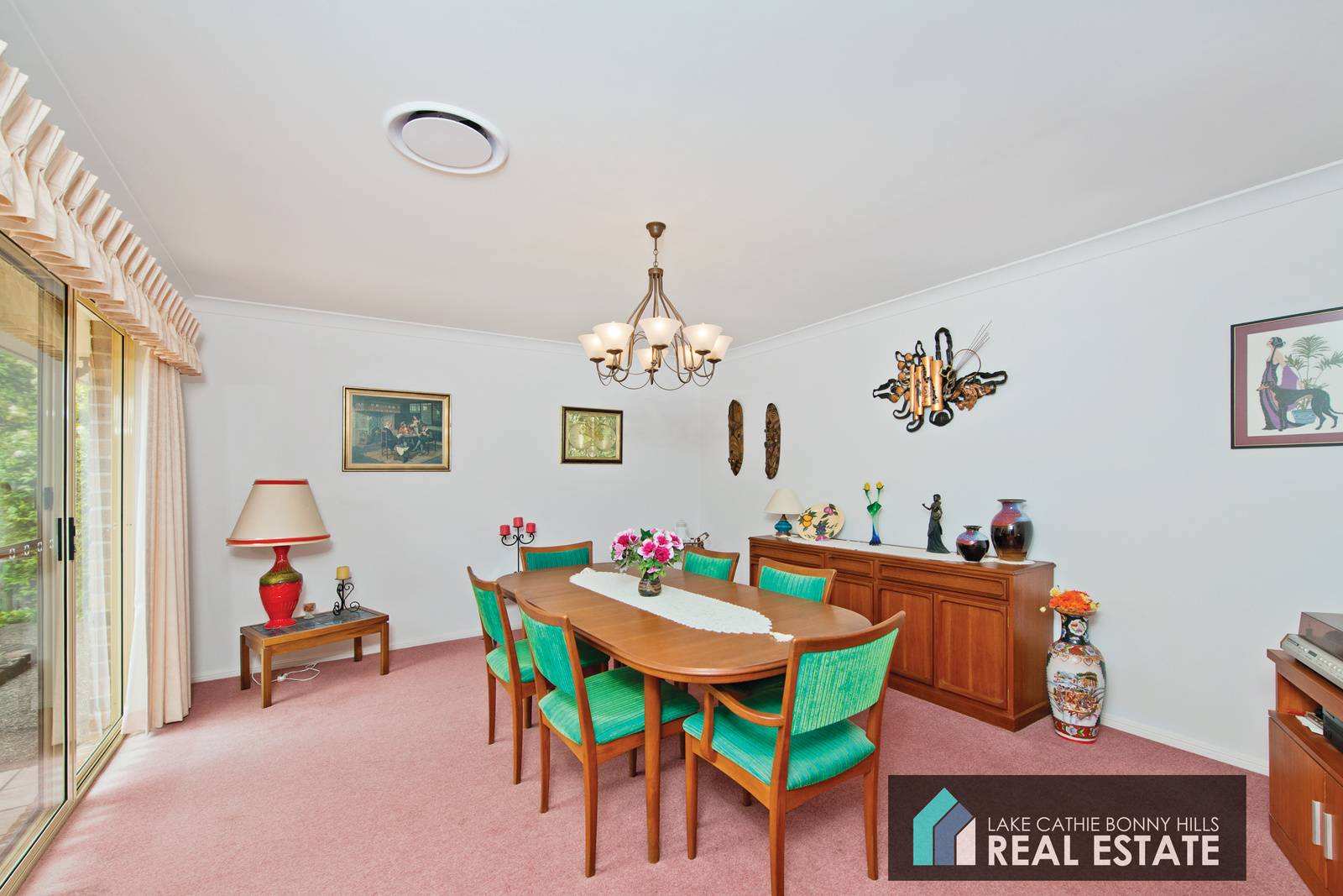 The traditional separate dining room is large enough to seat 12+ guests in comfort and style with flowing access through glass sliding doors to a partly covered entertaining area for those extra large gatherings and extended casual engagements.