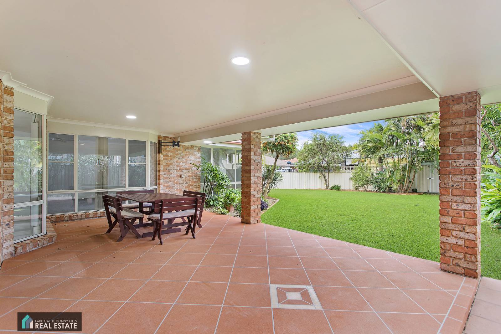 Quite end of Cul-de -sac position in extremely central location within walking distance to Lake Cathie Shopping Centre, Tavern and boutique shops , cafe's etc. Excellently presented and includes accommodation of central family/dining room, separate lounge or media room, segregated main bedroom with walk-in wardrobe and en-suite. All minor bedrooms have built-in wardrobes. Living area flows to wonderful large alfresco dining and entertaining area which overlooks very attractive private gardens. Features include new ducted zoned air-conditioning, new carpet to bedrooms and media room, new dishwasher, well appointed kitchen including walk-in pantry, ceiling fans and LED downlights throughout. Internal access to double garage with electric remote panel door. Bonus of side access for boat or trailer, good sized garden shed and water tank for the garden. Available now. Sorry pets not considered.