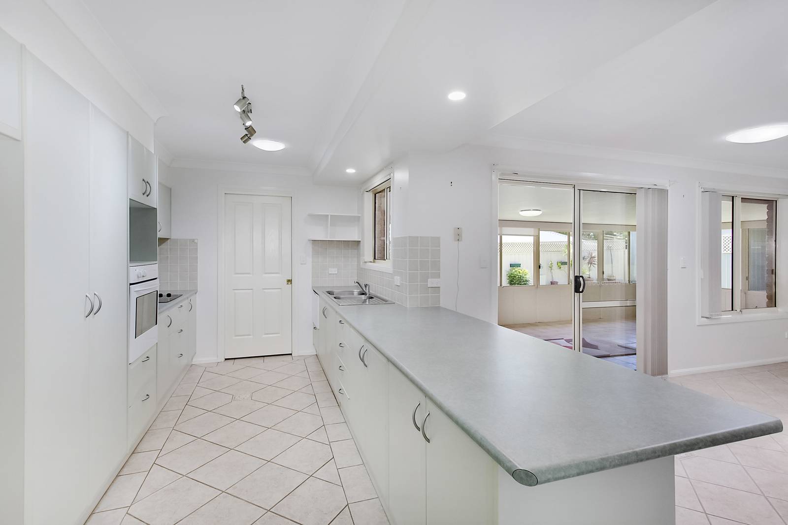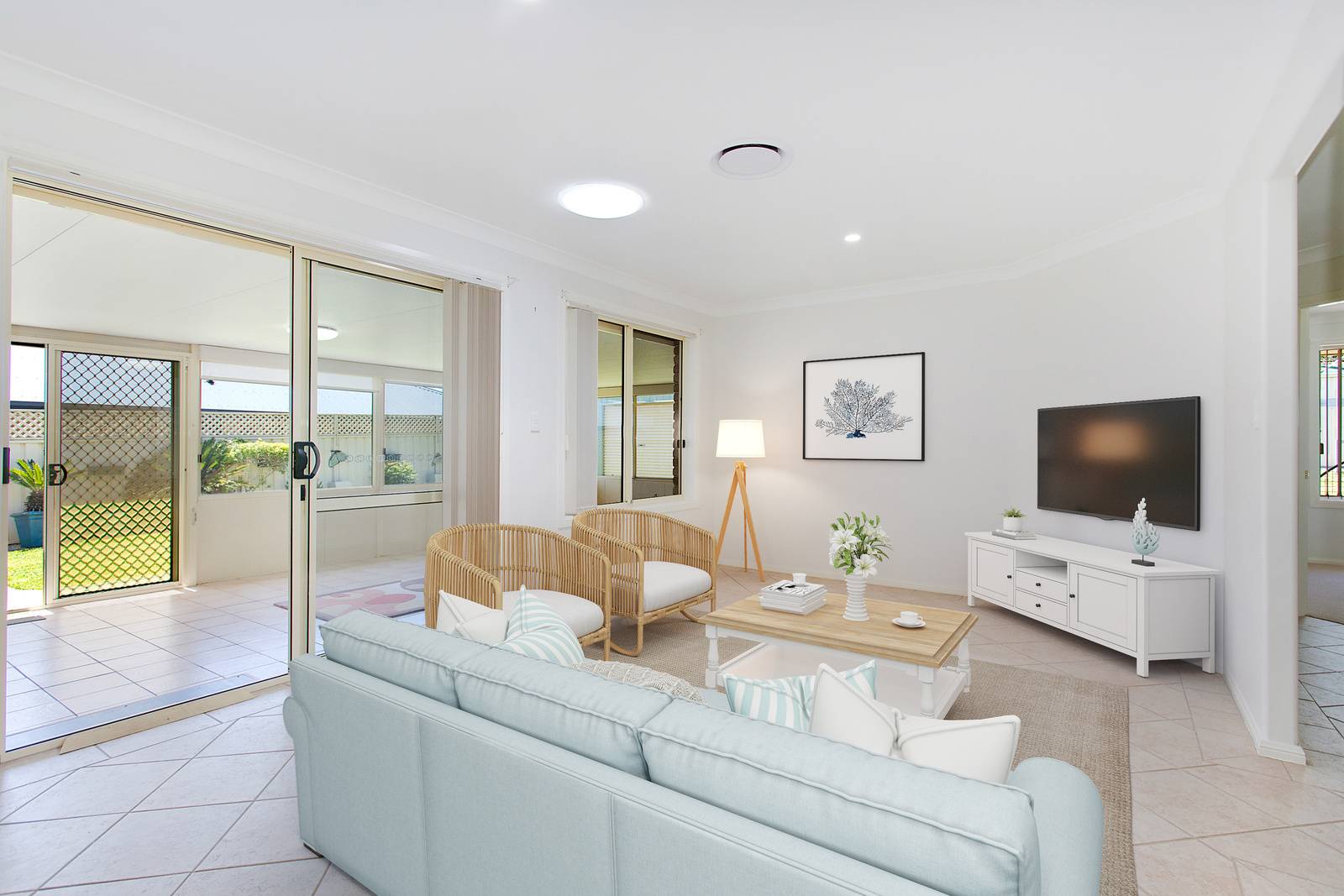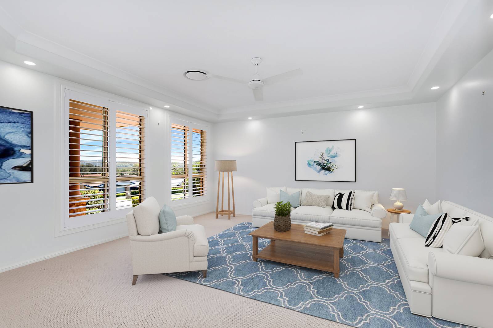 A formal dining room is situated opposite the kitchen, with the convenience of a breakfast bar and the added bonus of an oversized 3.8m x 8m Queensland Room with adjustable blinds, offering year-round extended living, dining and entertaining.