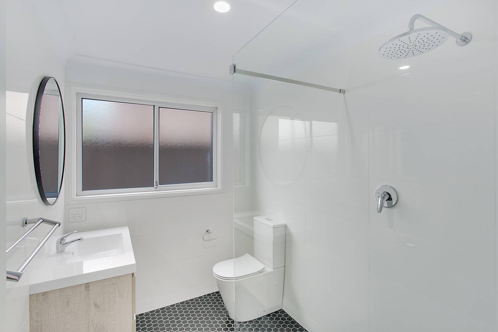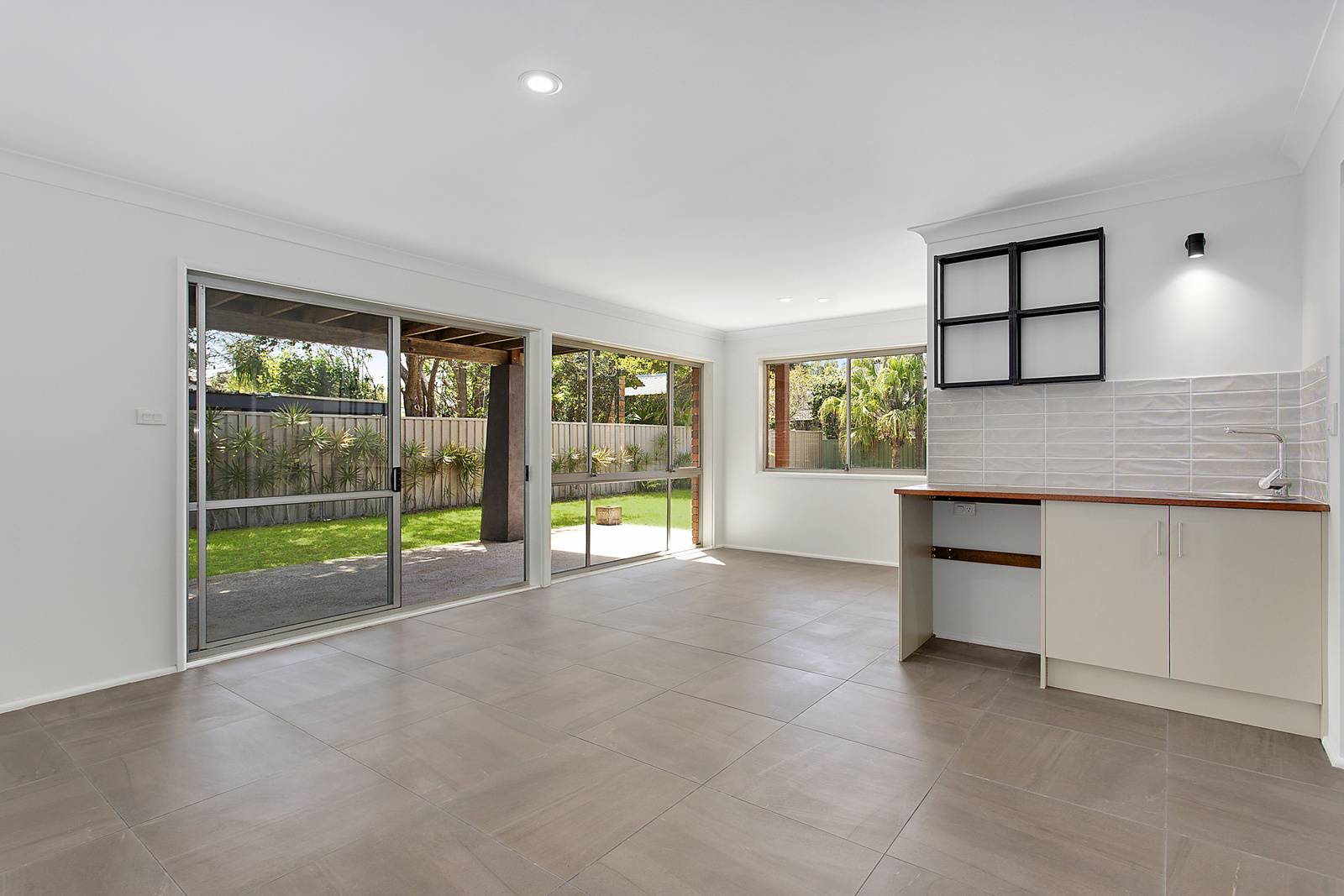 The built-in kitchenette offers practicality, while the stylish laundry can accommodate either an upright or under bench  washing machine.