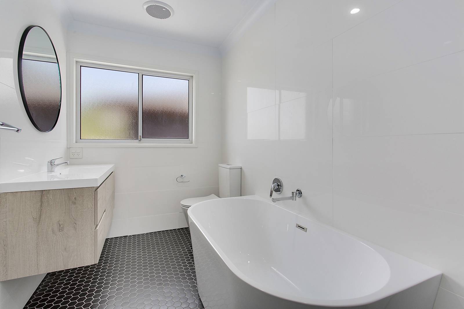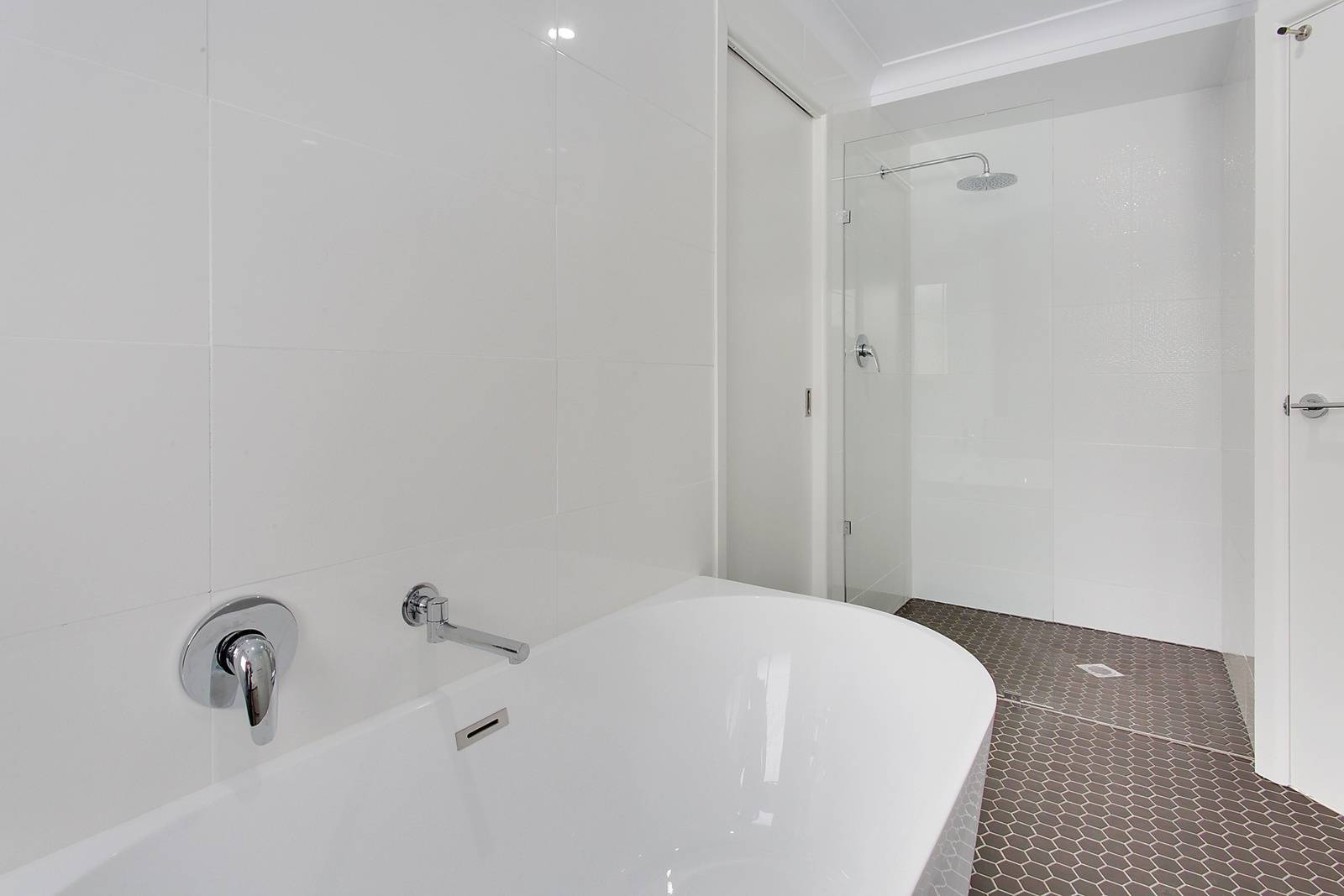 Included on this level are two bedrooms, the master with walk-in-wardrobe and an adjoining bathroom come ensuite that is absolutely stunning with its dark floor tiles, luxury freestanding bath, wall hung vanity and textured feature shower wall, with no expense spared on tapware and quality fittings.