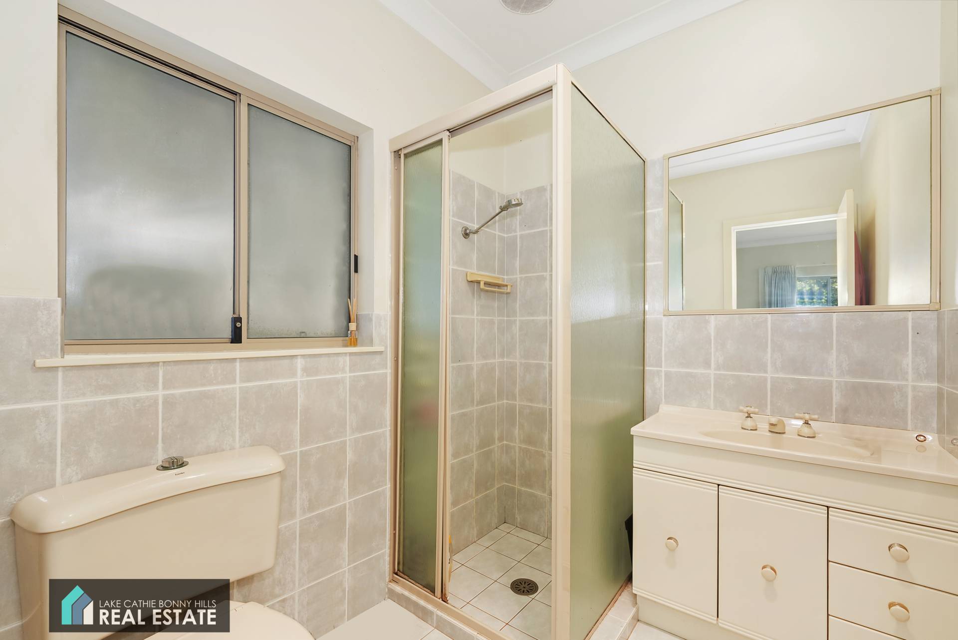 • Kitchen features raised screened island bench; refrigerator & freezer alcoves; dishwasher, rangehood, gas bench cook top; gas oven and seperate electric griller; skylight.