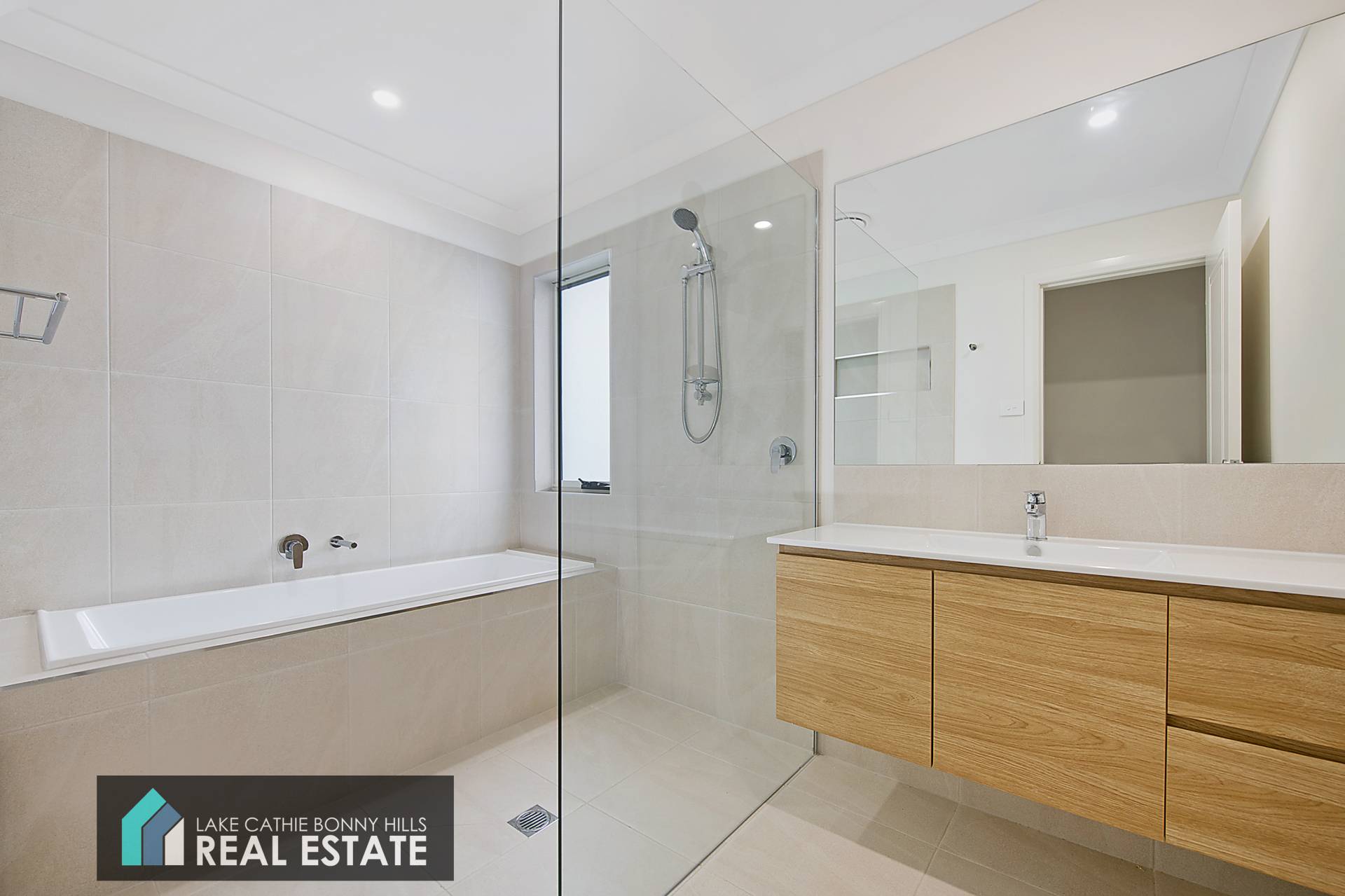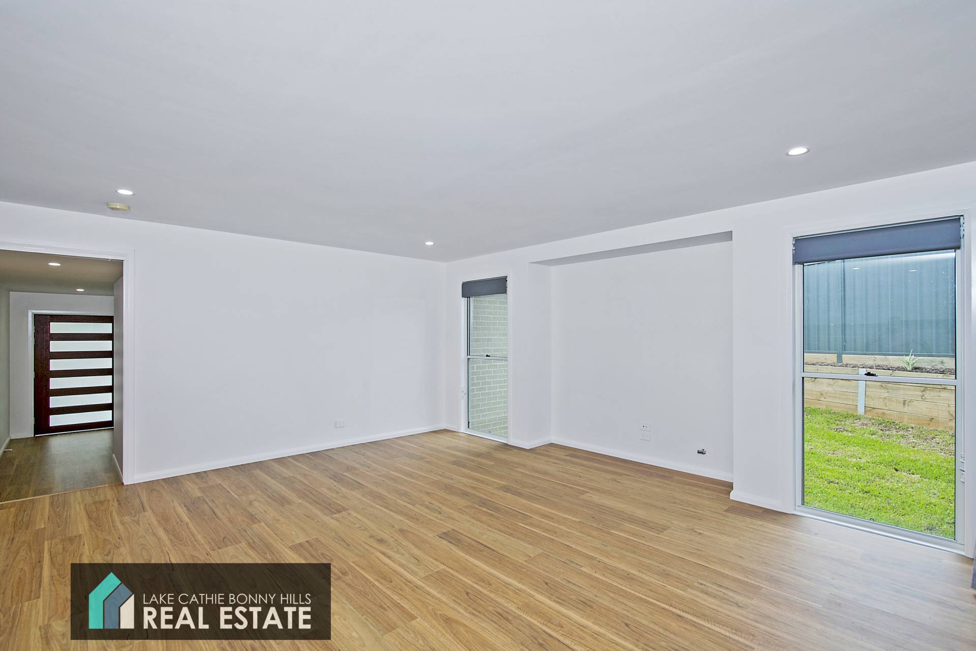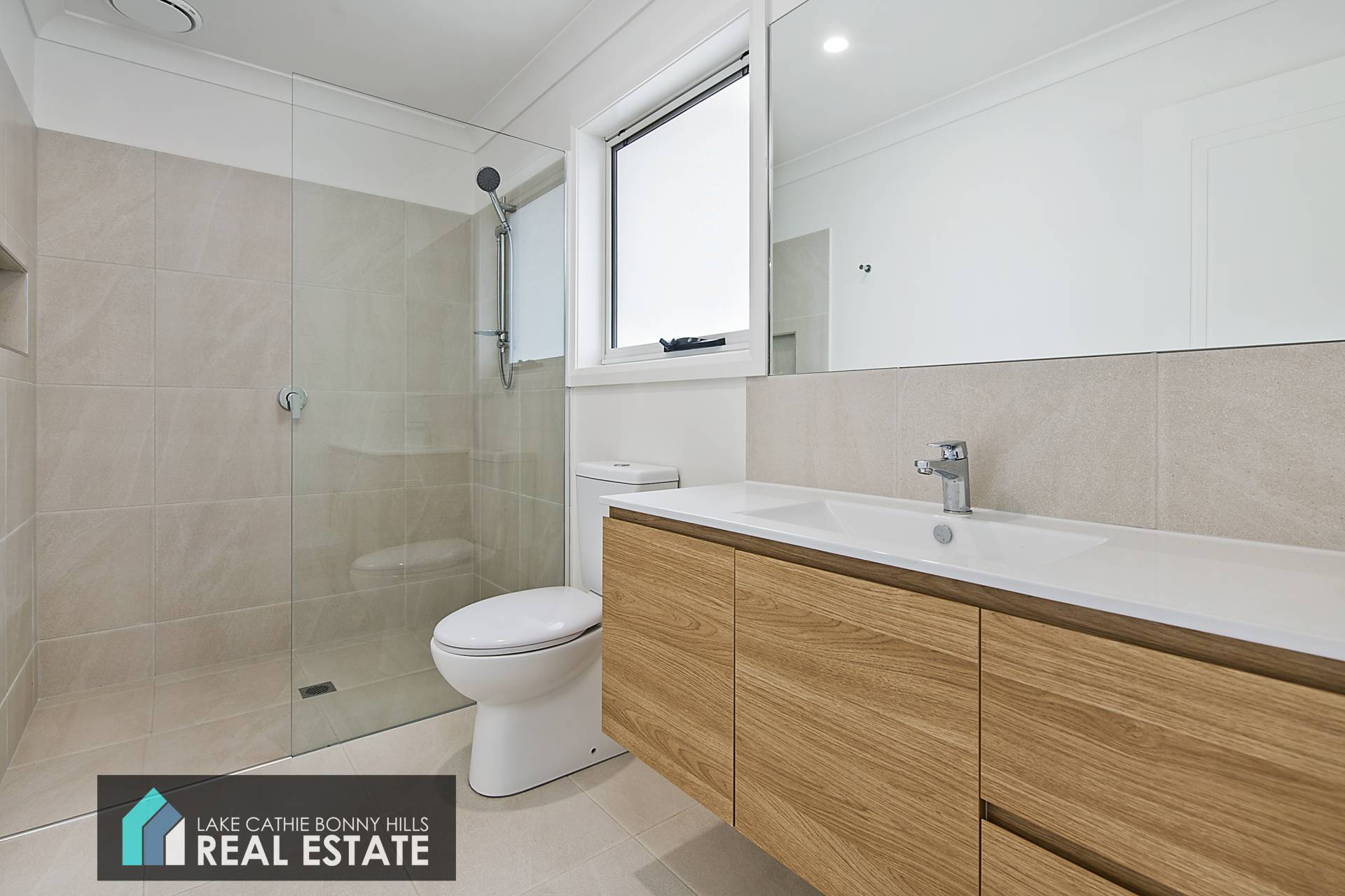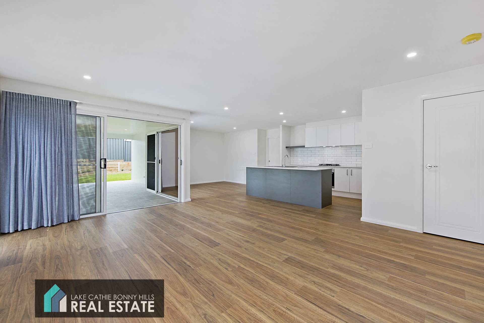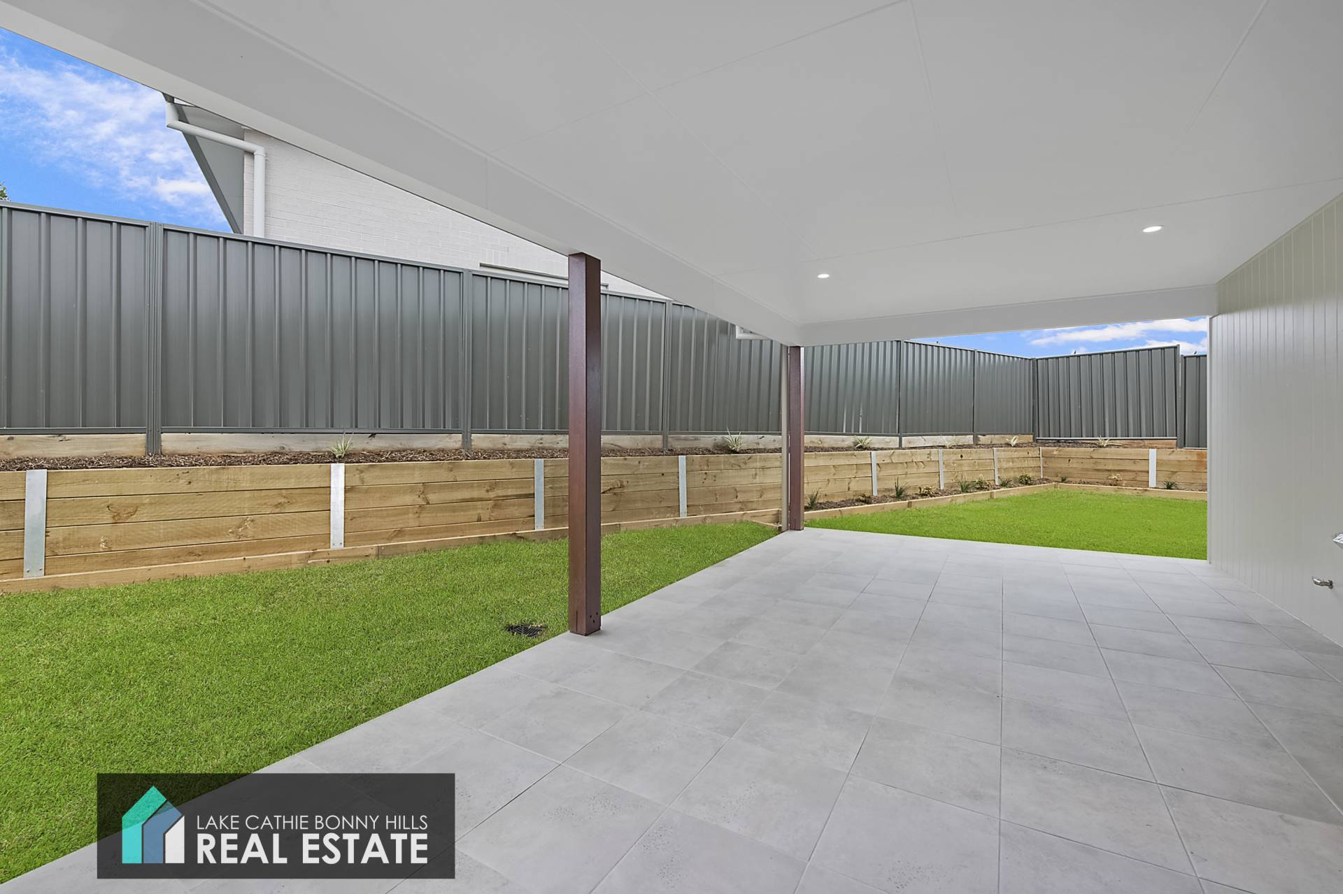Fabulous as New home in the  wonderful location of Rainbow Beach Estate within minutes walk to the Beach and Lake Cathie Medical Centre. A tremendous design featuring segregated main bedroom suite, separate media room or sitting room and fantastic open plan family living area with inset feature wall for Television and sound system, defined dining room and both with flowing access to the massive under roof alfresco dining & entertaining. The stone bench kitchen boasts island bench, walk-in pantry, gas bench cook-top. electric oven and in-built range hood. The minor three bedrooms, all with built-in wardrobes, are positioned in a separate wing and serviced by a designer bathroom featuring large doorless walk-in shower. There is a combination of blinds and curtains throughout, floating timber styled plank flooring to entry foyer, passageway, family living areas with carpet to the bedrooms and media room. Property is serviced with Gas hot water, gas bayonet outlets including to the alfresco dining, ceiling fans, air conditioning and remote garage door. Property is fully fenced with attractive established lawns and gardens. Sorry pets not considered. Available for long lease. Viewings by appointment from 30th April.