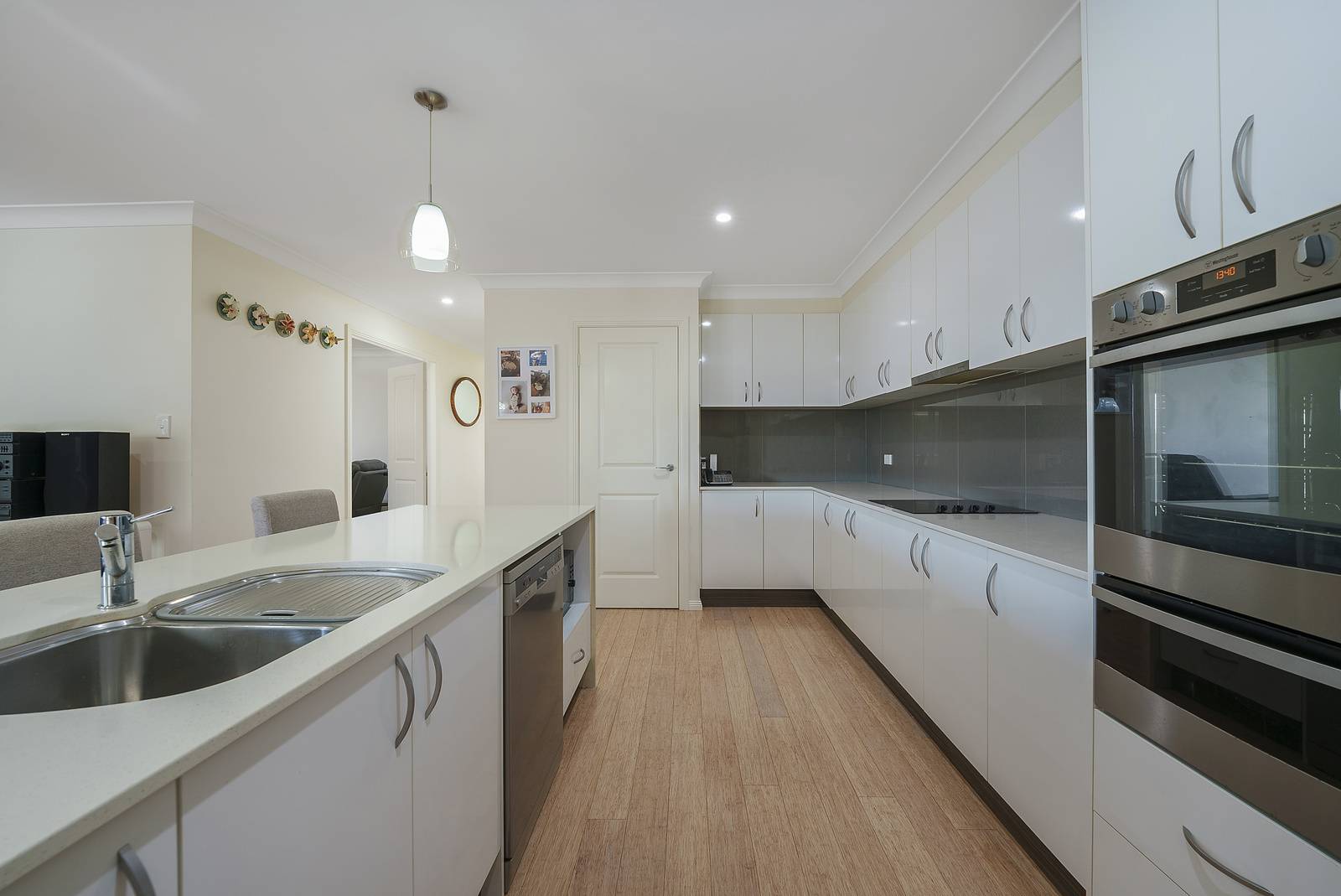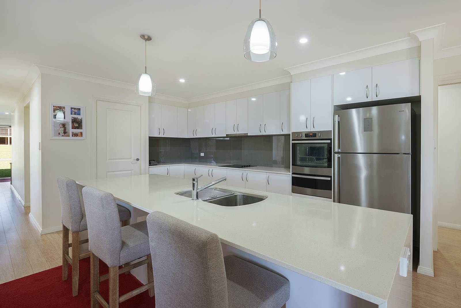 Inside you will find open plan living with a huge entertainers kitchen that features a magnificent stone island bench with waterfall ends,  complete with oversized breakfast bar, walk-in-pantry, abundant storage and quality stainless steel appliances.