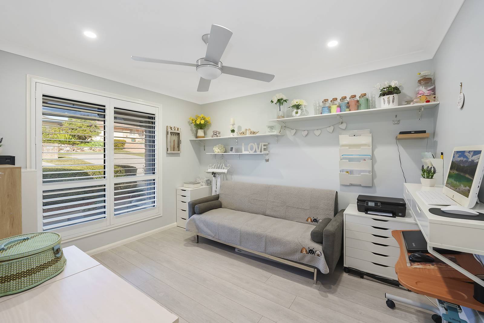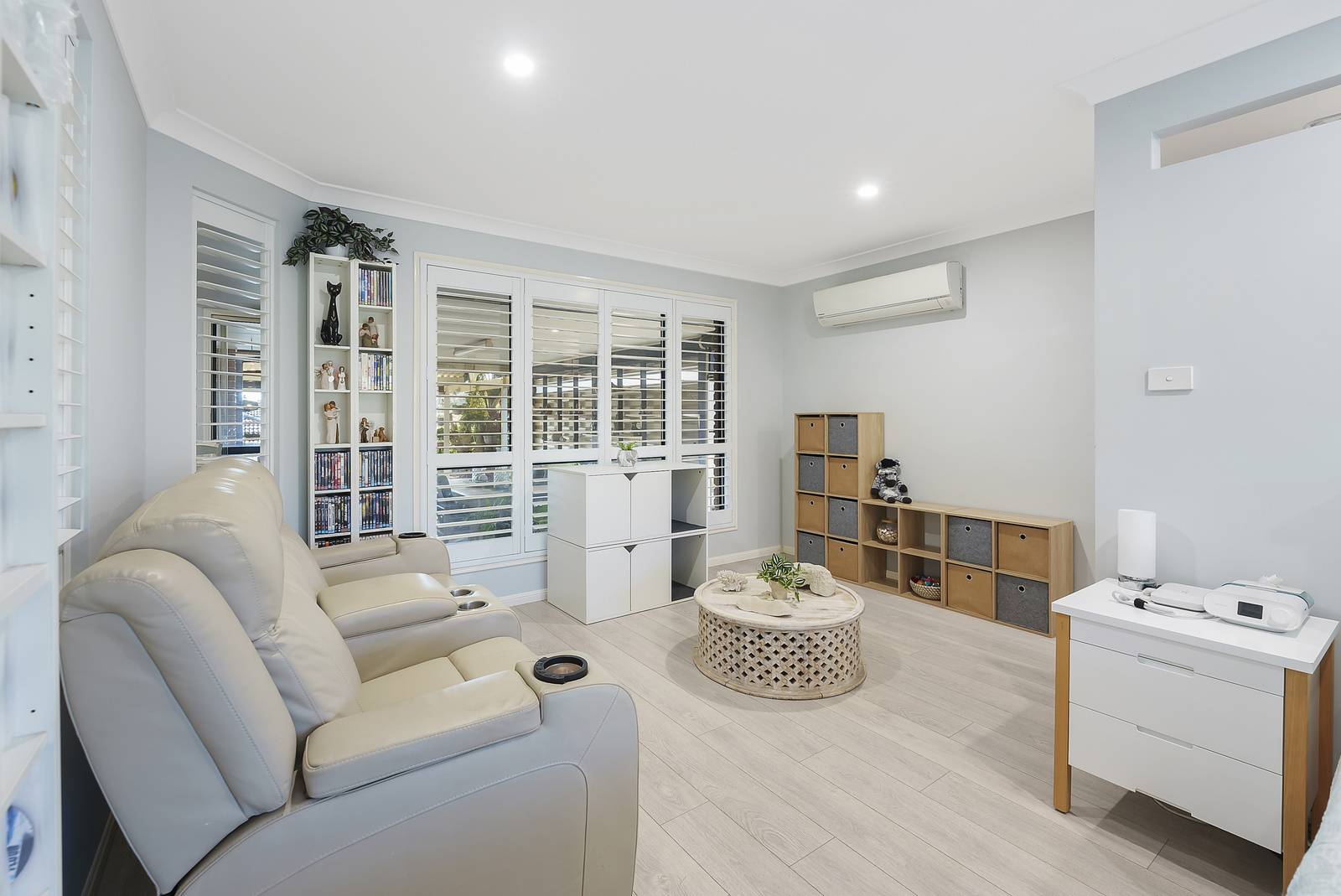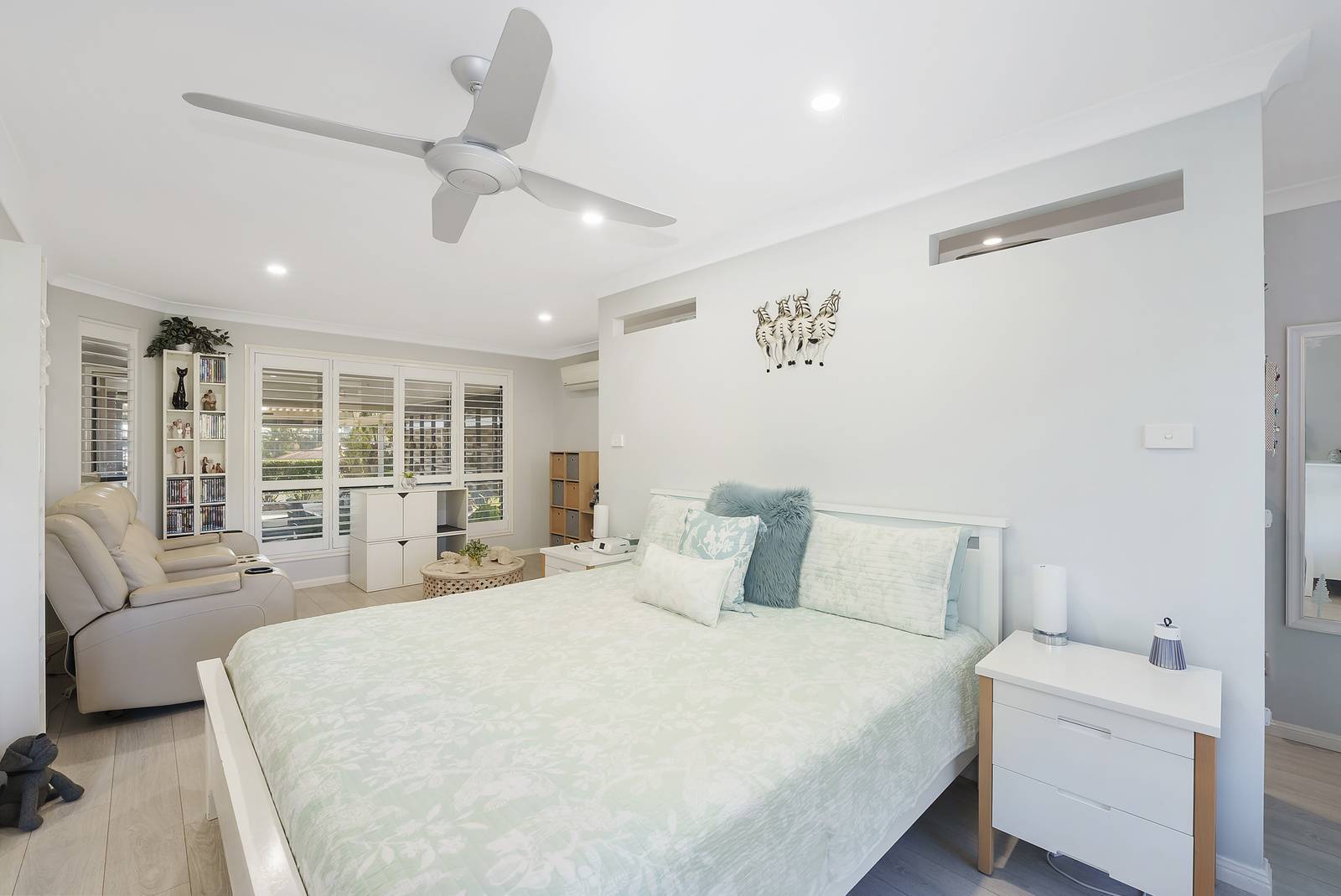 At the front of the home you will find the luxurious guest suite, which is 'a sanctuary', featuring its own living area and a chic walk-in-robe that promises ample storage and style, finished with white plantation shutters and matching custom made doors - this is a space that your guests will never want to leave! Alternatively, this room could also be utilised as an additional living zone with cleverly designed built in storage.