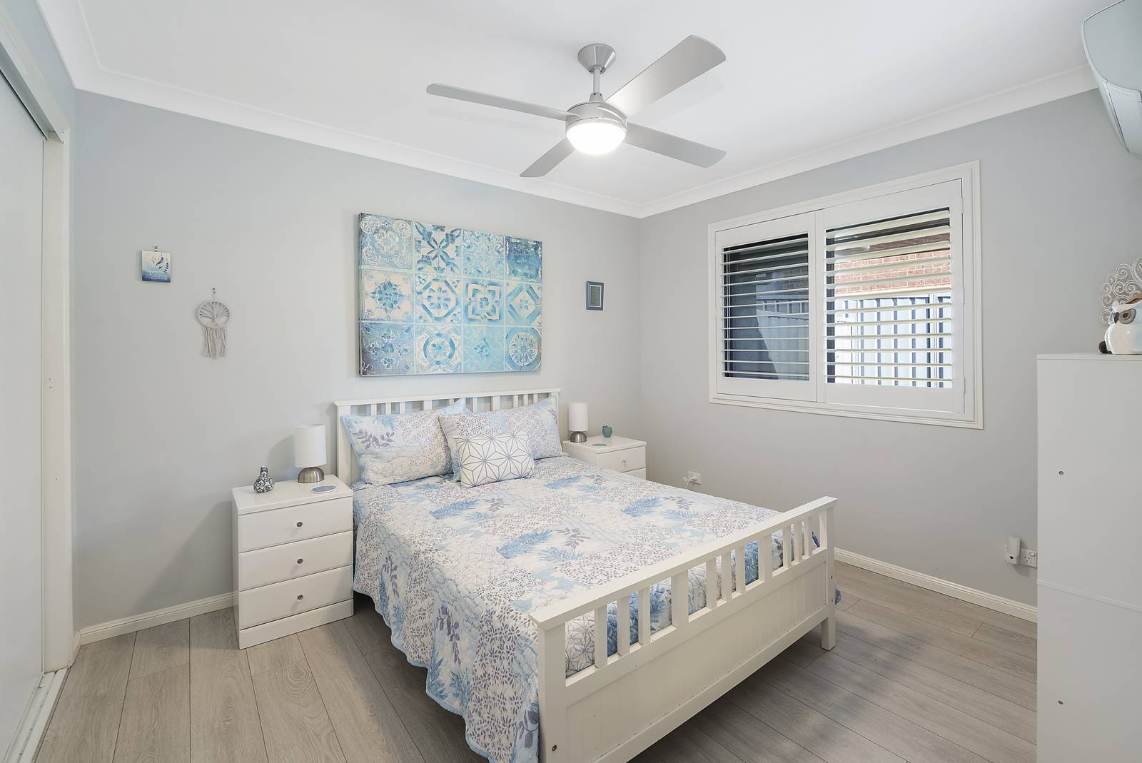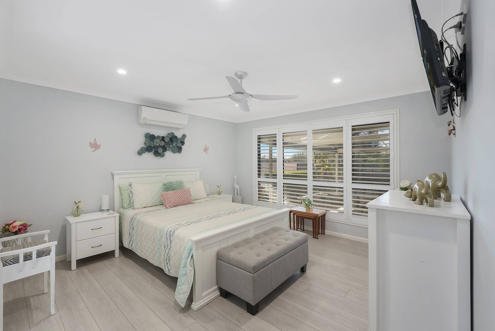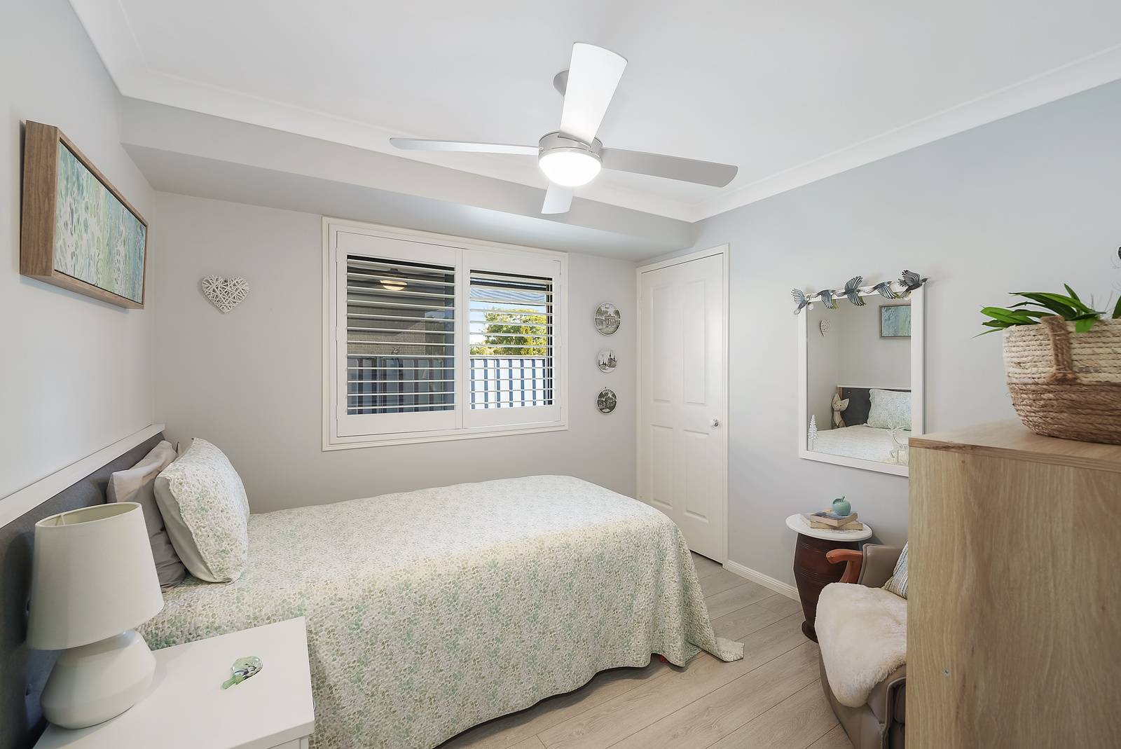 At the front of the home you will find the luxurious guest suite, which is 'a sanctuary', featuring its own living area and a chic walk-in-robe that promises ample storage and style, finished with white plantation shutters and matching custom made doors - this is a space that your guests will never want to leave! Alternatively, this room could also be utilised as an additional living zone with cleverly designed built in storage.