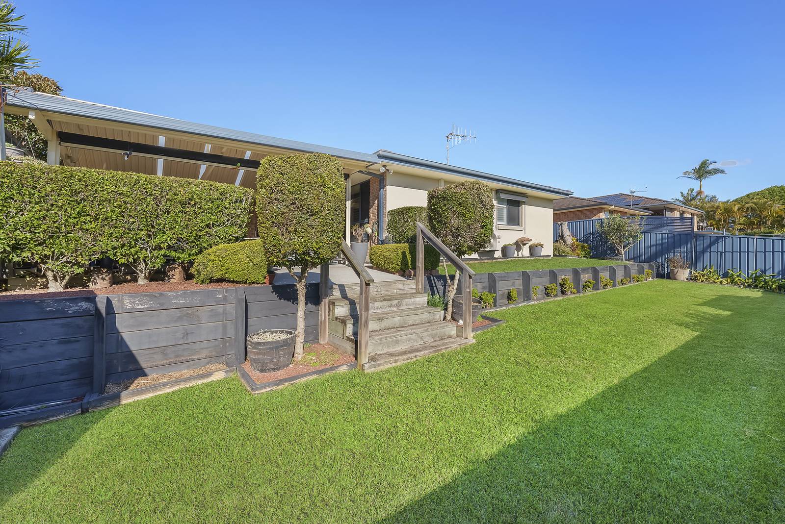 A double remote garage with the added bonus of an additional hard top parking space suitable for a caravan, boat or trailer, makes this property the complete package.