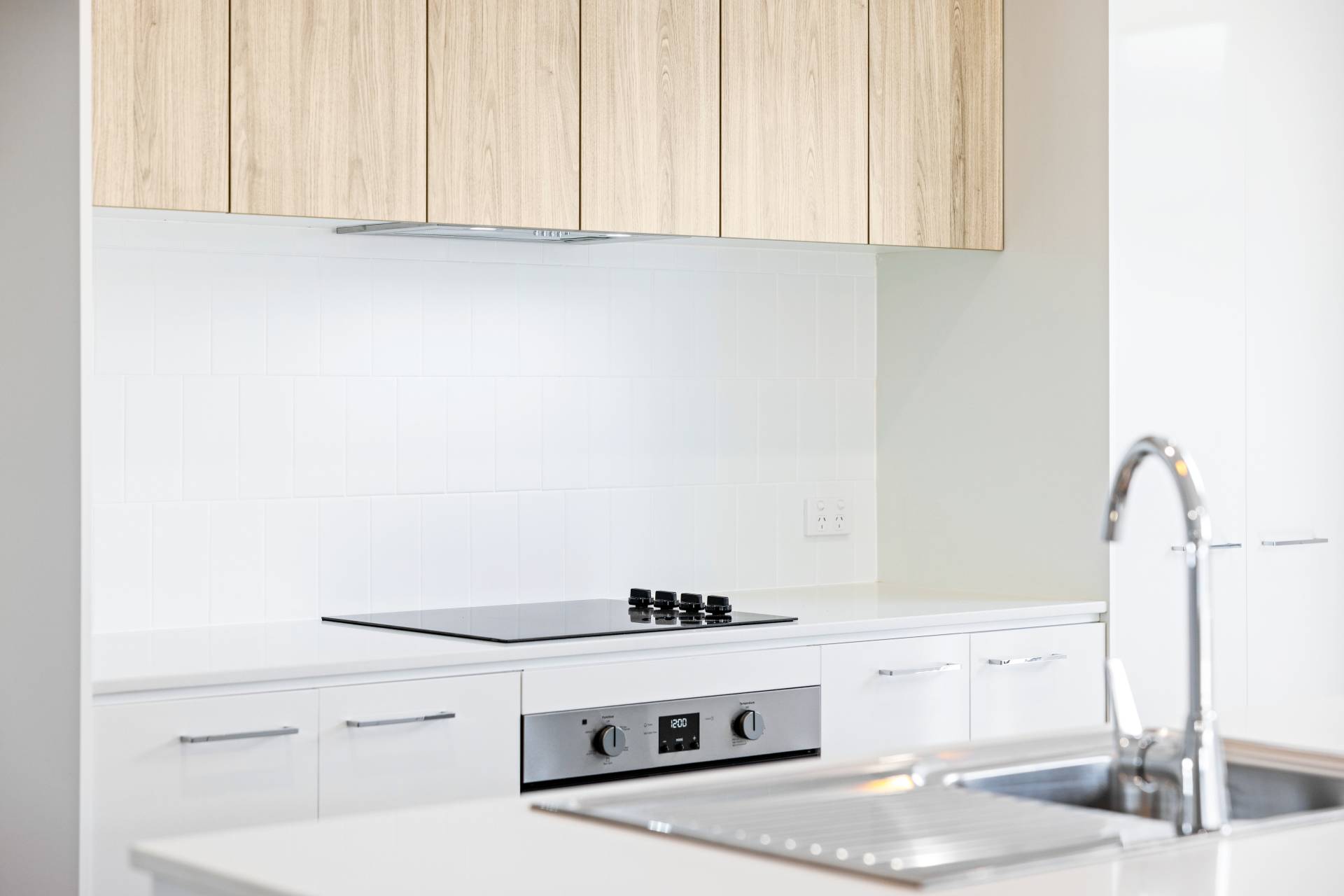 - Contemporary kitchen with stone benchtops and breakfast bar
