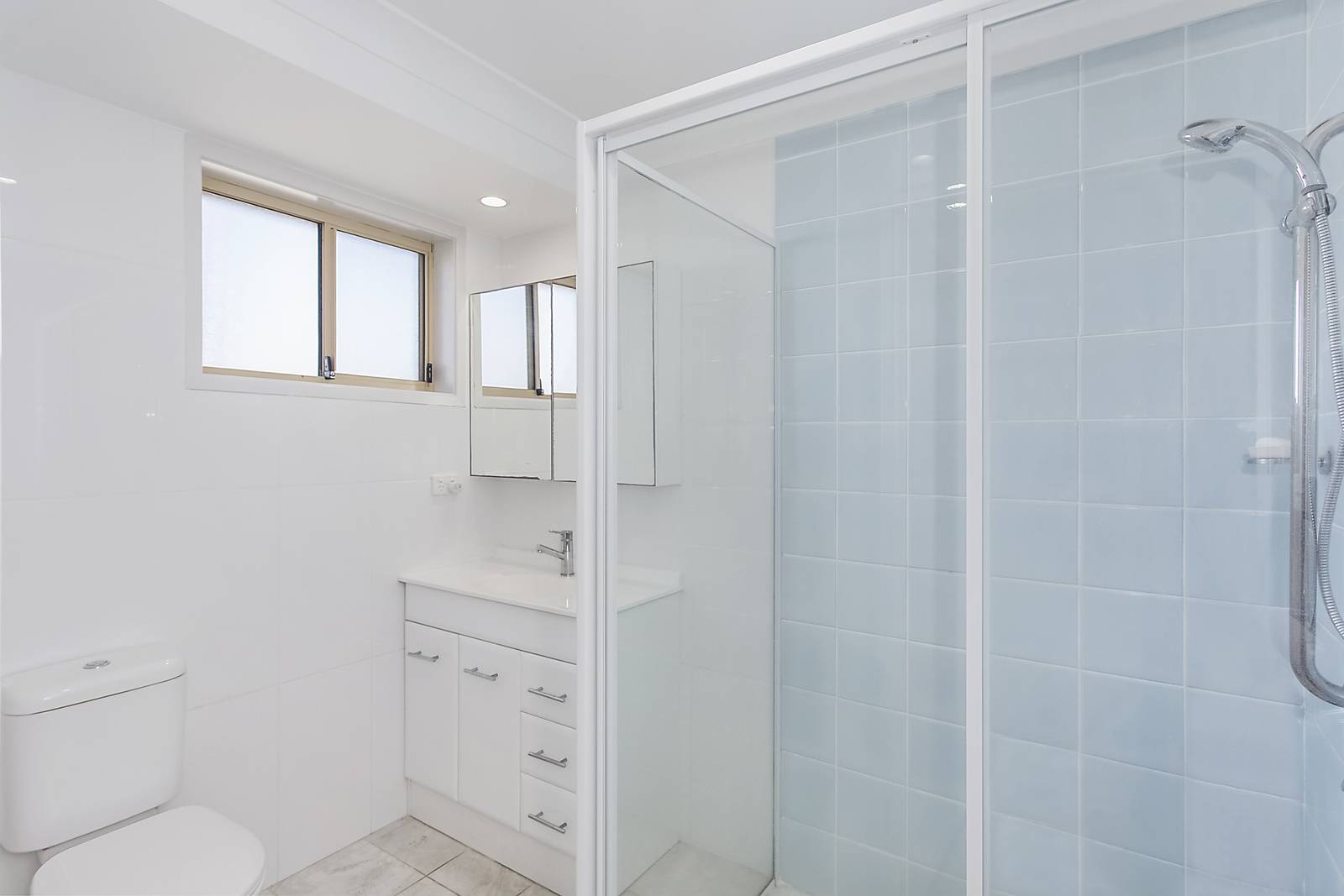 • Two bedrooms include built-in wardrobes, main with ceiling fan and split air-conditioning.