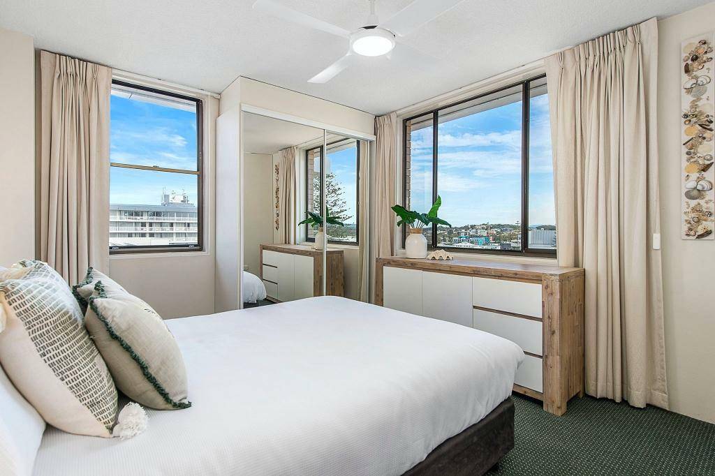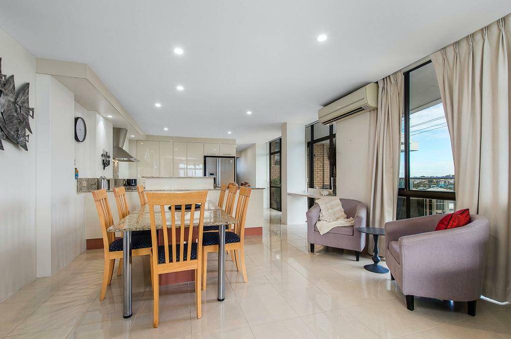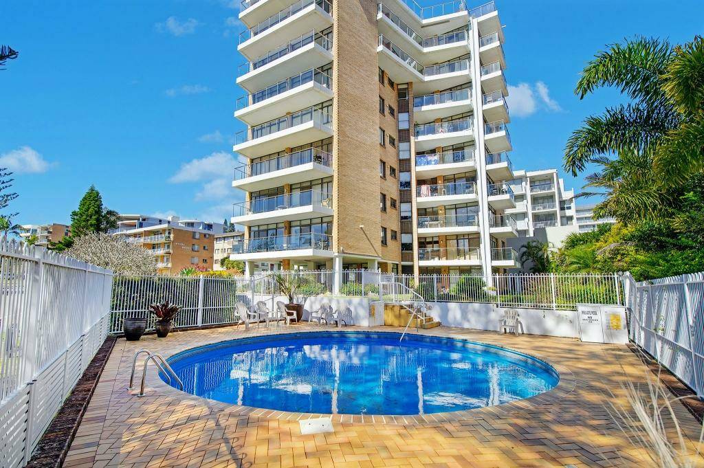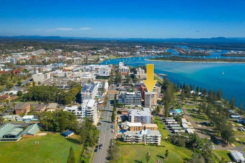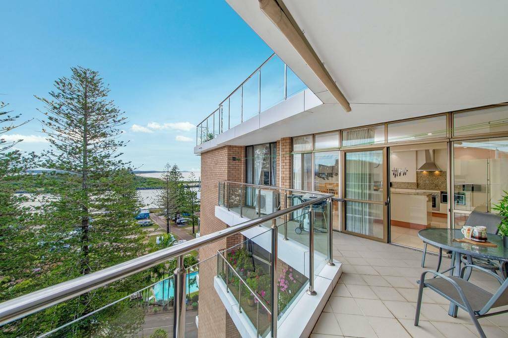 Located on the top floor (8th floor) in the Tasman Towers building, accessible by elevator. Inside you will find an open plan lounge, dining and kitchen with ocean views and multiple front and side verandahs overlooking the water with views along Port Macquarie North Shore beach and Town Beach. The side verandah has an outdoor table and Weber BBQ.