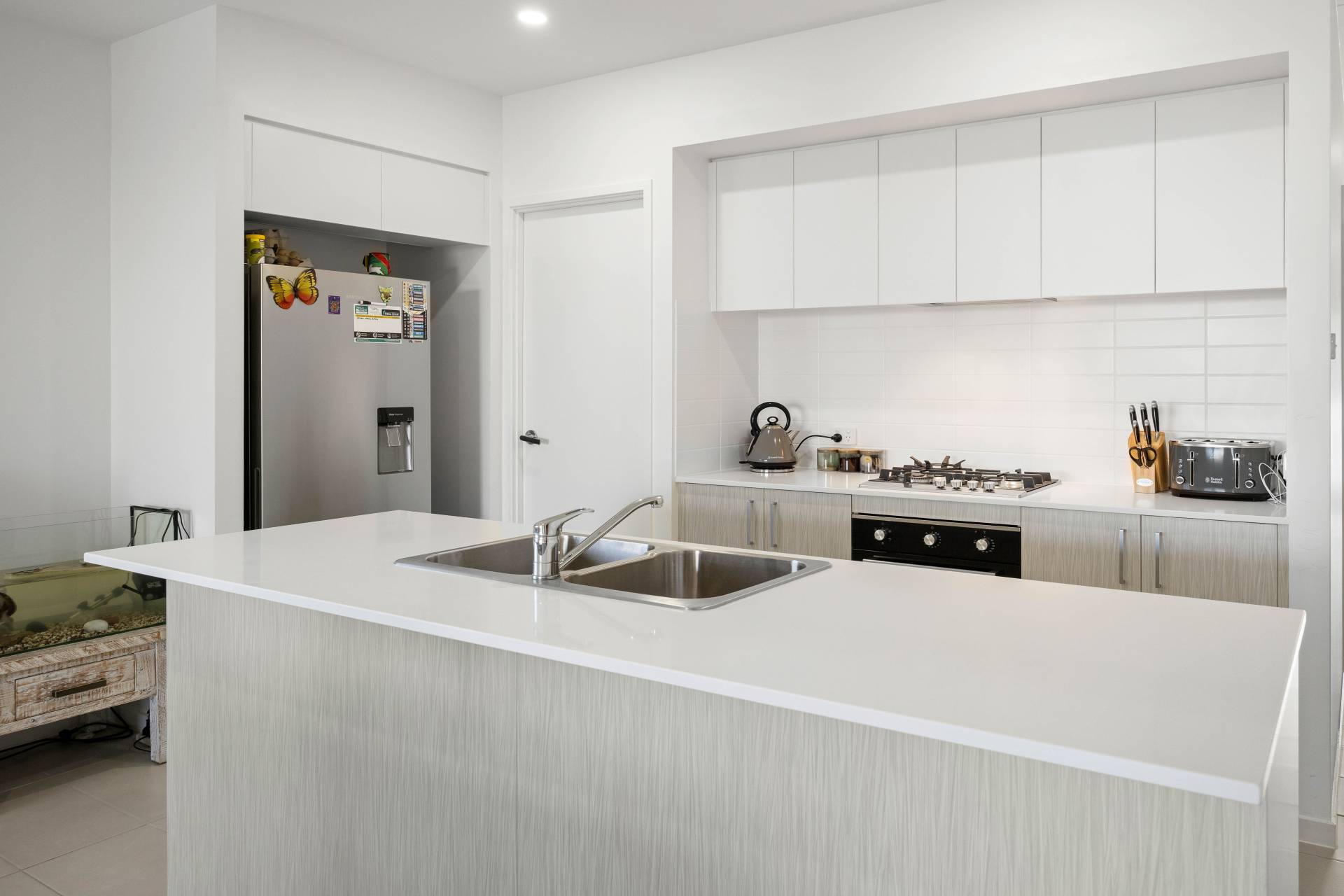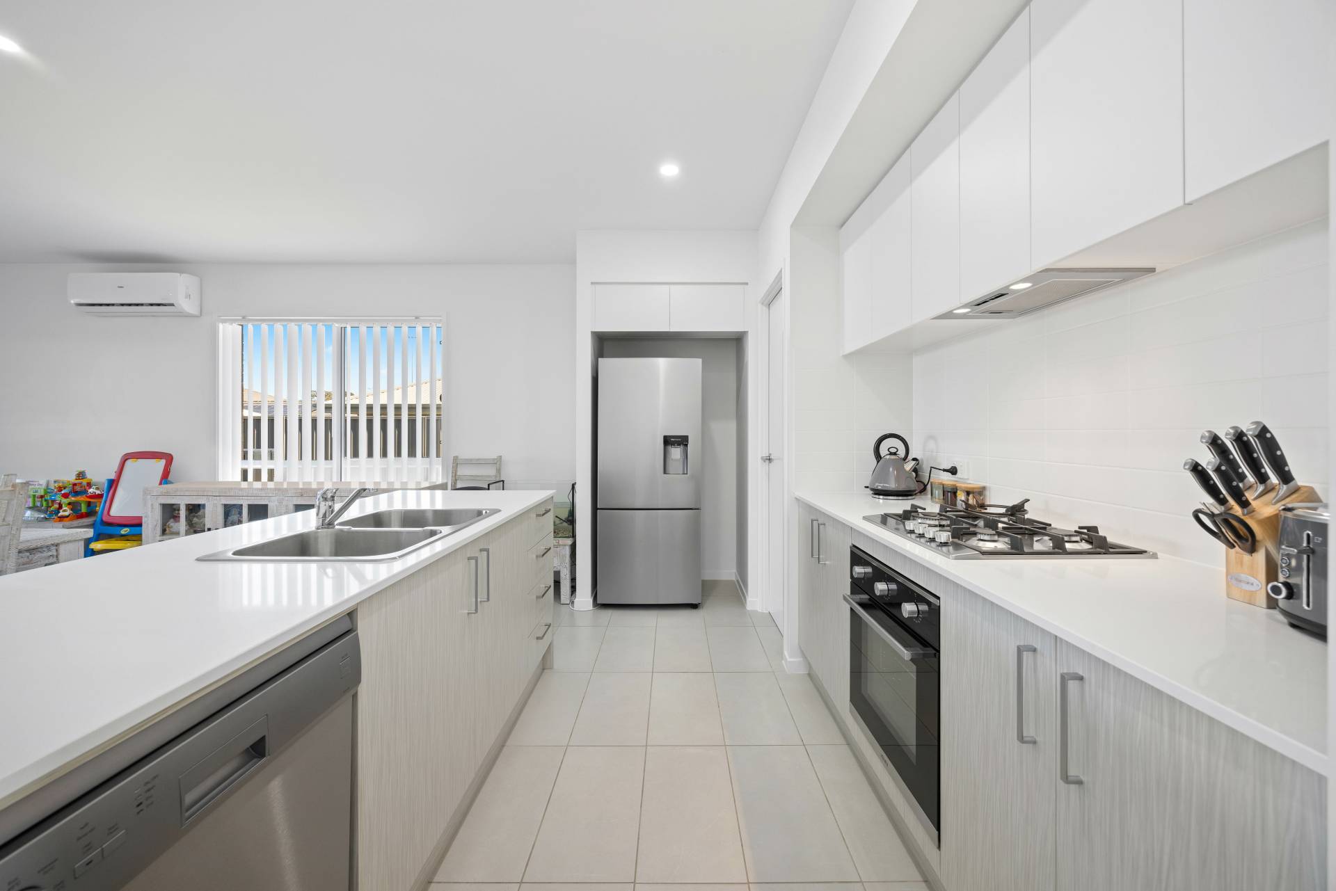 With a kitchen that's sure to impress, showcasing on-trend stone island bench with a fantastic walk-in-pantry, dishwasher, wall oven and gas 4 burner cook top.