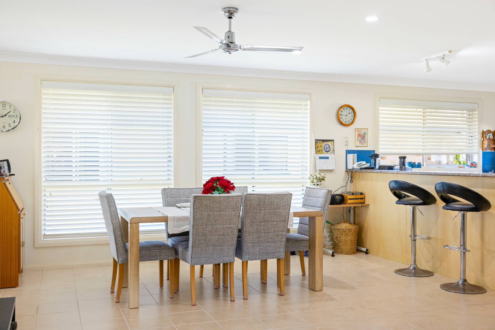 Set on a private 706m² block, the property boasts spacious interiors, air-conditioned living spaces, and a versatile open-plan design, with plenty of space for a home office / study.  At the heart of the home is the entertainer’s kitchen featuring a gas cooktop, stainless steel dishwasher, abundant storage, generous bench space and a breakfast bar.