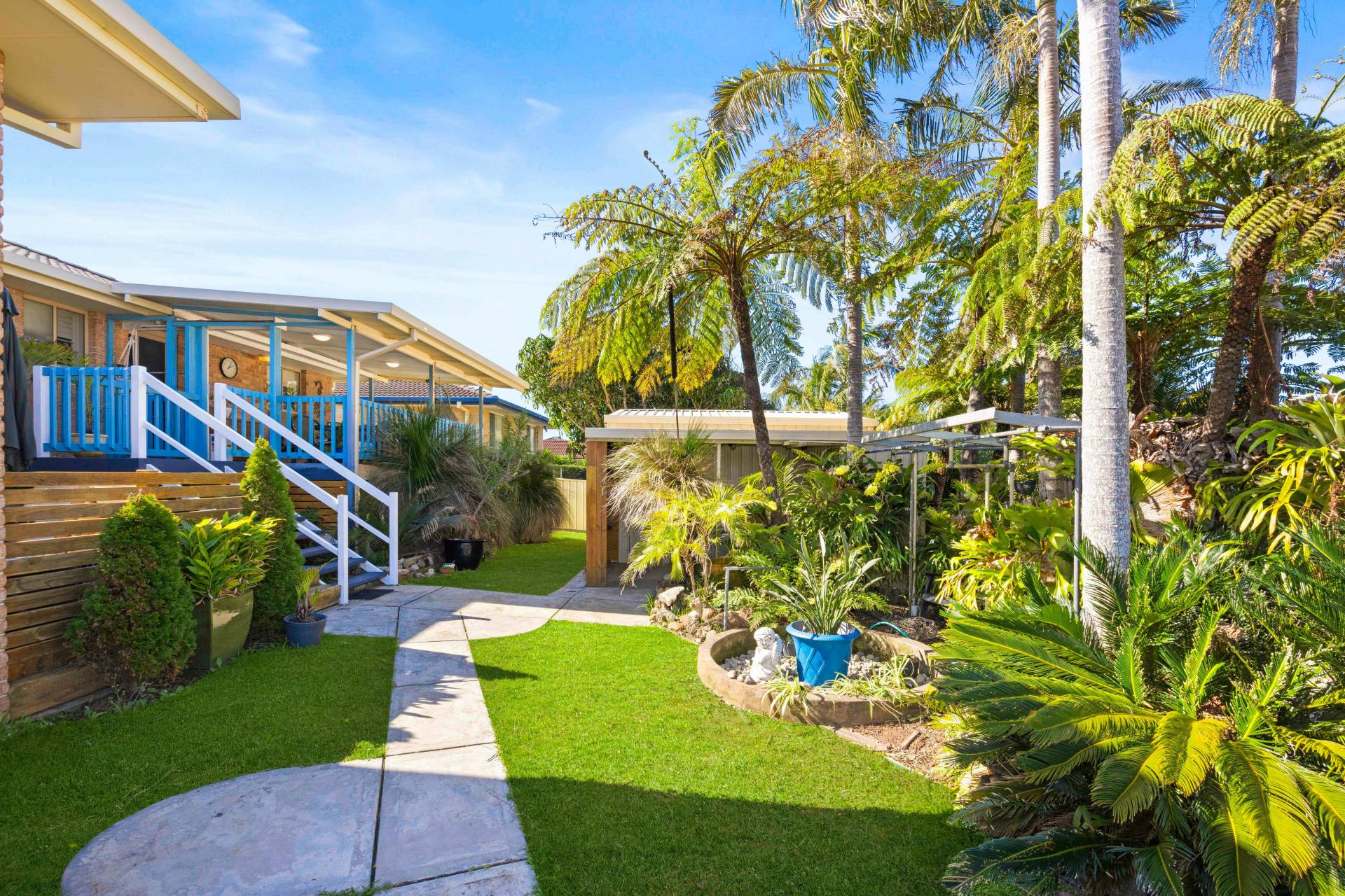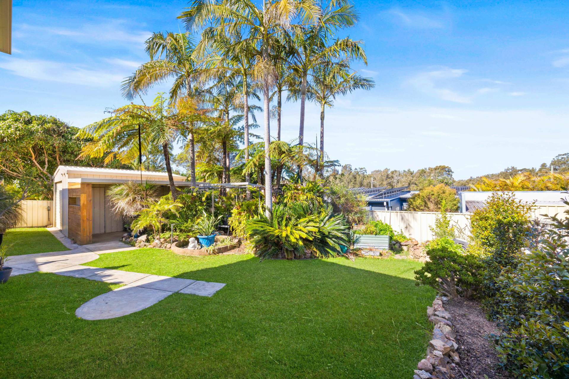 Tucked away in the corner of the yard is something that every man dreams of owning - an all-mighty mancave!  Whether its tinkering with projects in the workshop, playing a round of darts with friends, or serving drinks through the custom made bar/servery window, this large multipurpose shed is sure to be the envy of the street, complete with it's own plumbing and w/c.