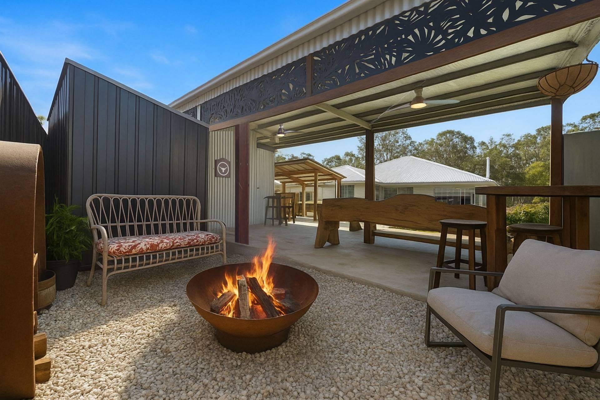 The well-designed multiple indoor living zones cater for the largest of families whilst offering a seamless transition to the incredible outdoor entertaining spaces that will be a hub for everyday family life and endless entertaining.  From the spacious undercover Alfresco, its just a few steps to the sparkling in-ground swimming pool framed with Travetine paving, or perhaps you prefer to kick back and relax in the lux undercover spa, complete with cascading waterfall.  The addition of a Wide-Span shed aka “ultimate mancave/workshop” plus a spectacular secondary undercover entertaining zone accented with Merbau timber posts,  is the perfect venue for hosting winter gatherings around the cozy fire pit.