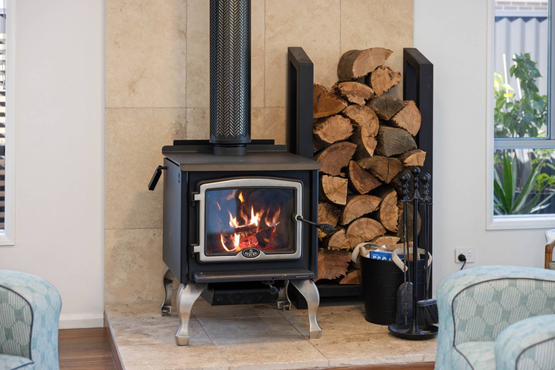At the heart of the home is the gourmet kitchen featuring an impressive 900mm gas cooker, walk in pantry, oversized stone island bench with breakfast bar, adjoining an open plan family room that’s sheer size is generous enough to accommodate two lounge or seating areas, with a homely Canadian wood-burning fireplace, plus dining and let’s not forget the separate media room with on trend feature barn door that adds to the charm.