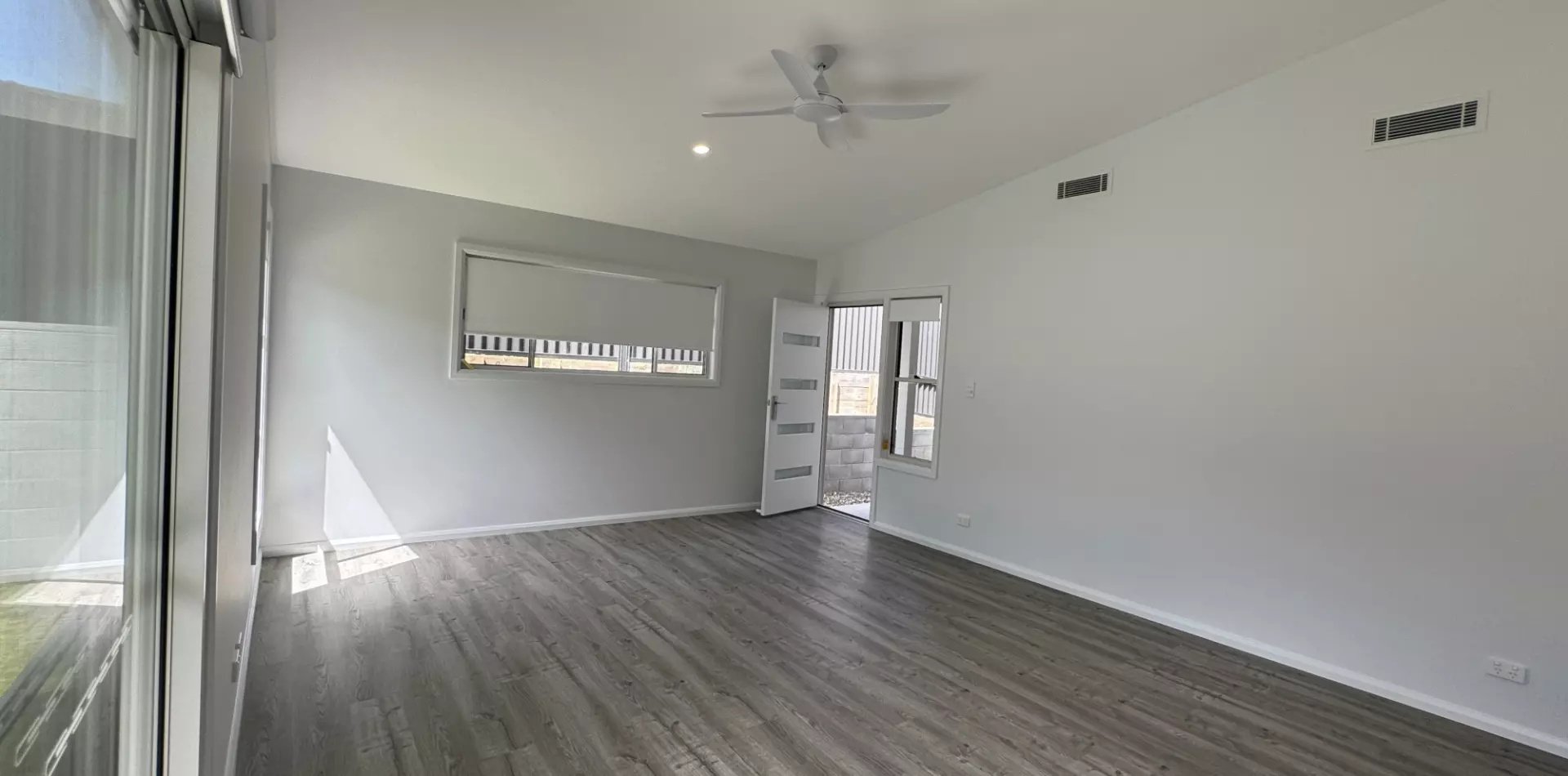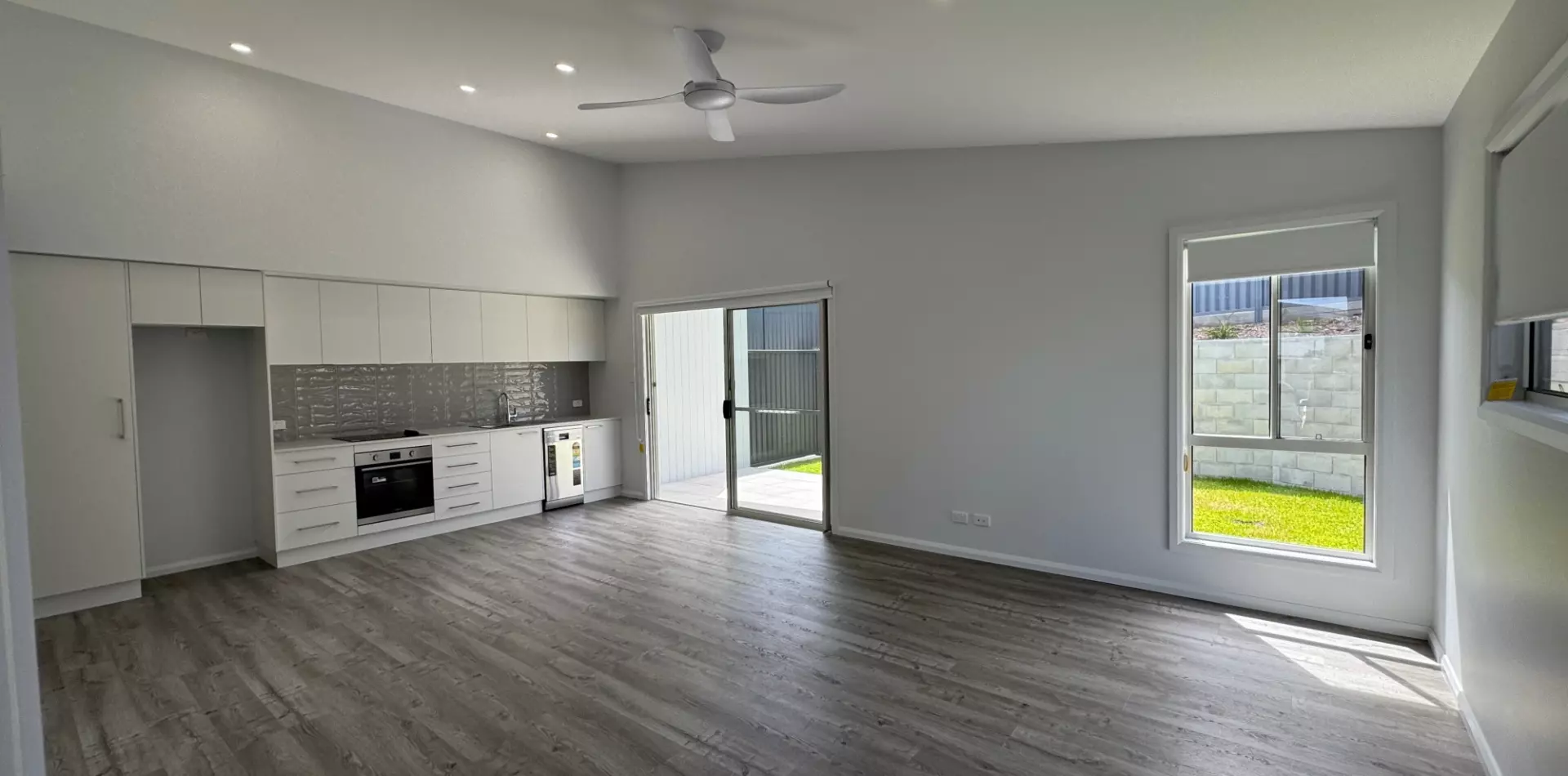 Contemporary townhouse close to the beach and opposite Lake Cathie Public School. Features an open-plan lounge and kitchen that flows into an outdoor entertaining area