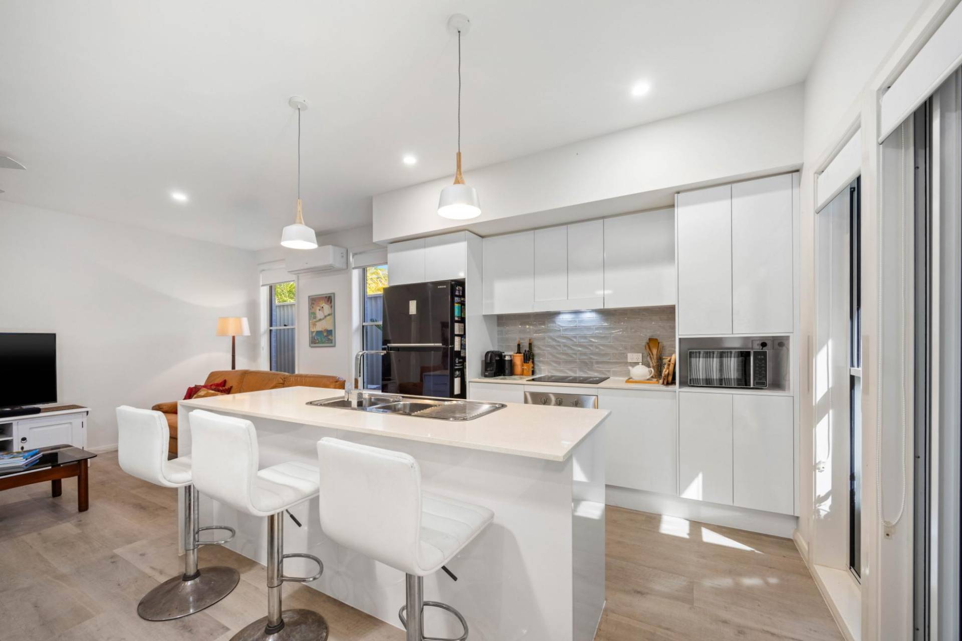Showcasing high-end finishes, this stylish villa embraces open plan living with spacious lounge, dining and living zones that overlook a landscaped rear courtyard and undercover alfresco, which is perfect for year-round outdoor dining and entertaining.