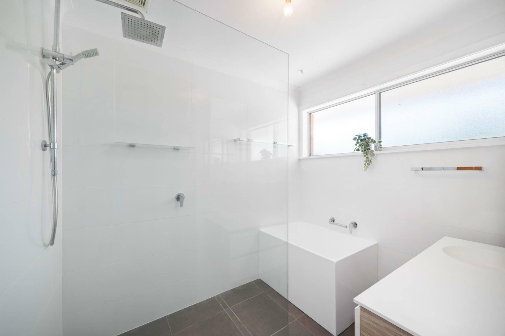 * New modern bathrooms with wall hung vanities