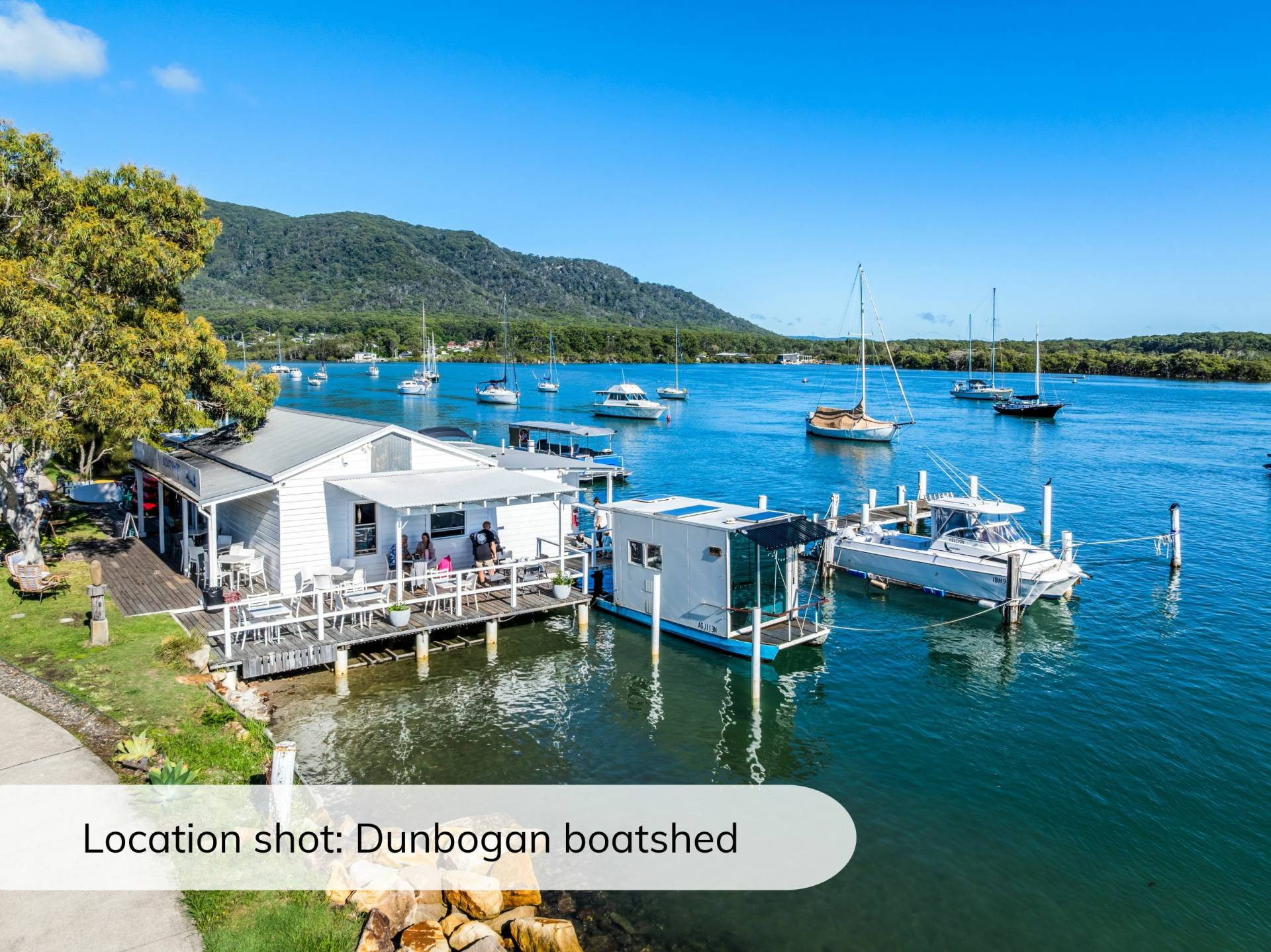 5 minute walk to Dunbogan Boatshed, Marina and Café