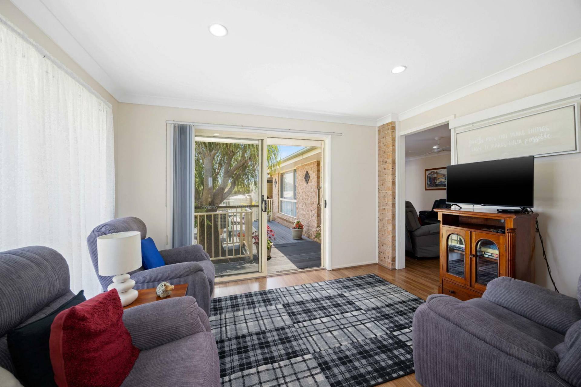 Offering generous indoor and outdoor living spaces in an unbeatable location, this home is just a stone’s throw to Woolworths Shopping Village and specialty stores, with the convenience of a bus stop just across the road. Enjoy ocean glimpses from the balcony, lounge room and rear entertaining deck, with the golden sands of Lake Cathie beach just a relaxed 350-metre stroll away.