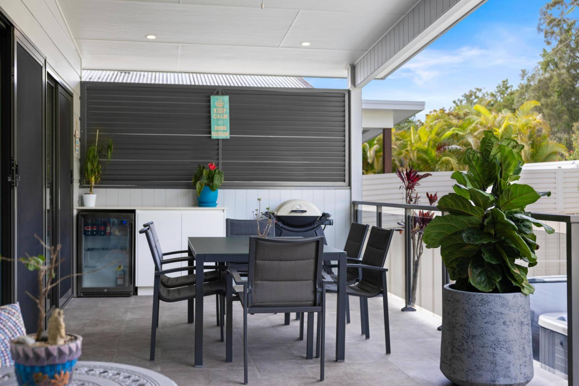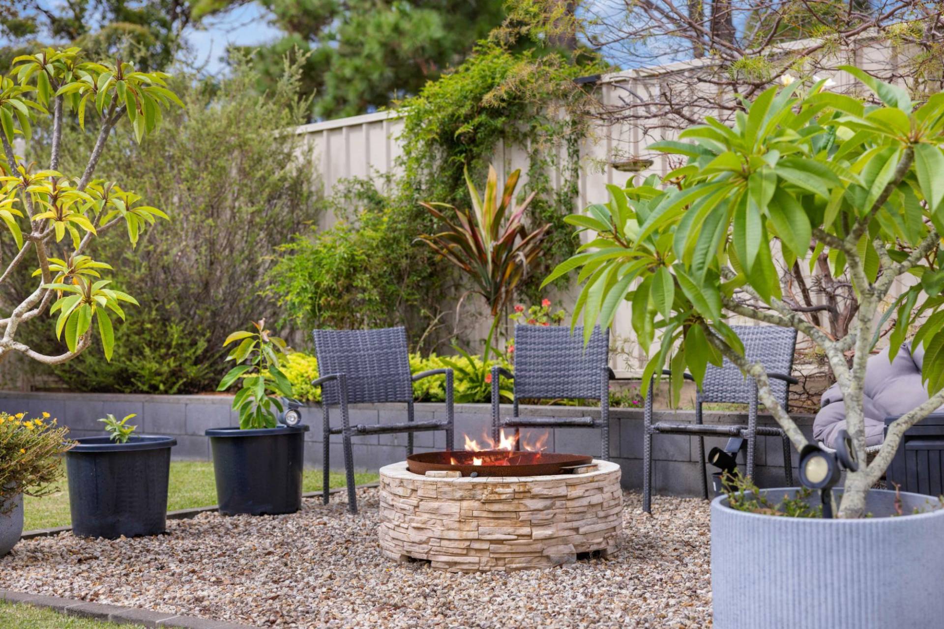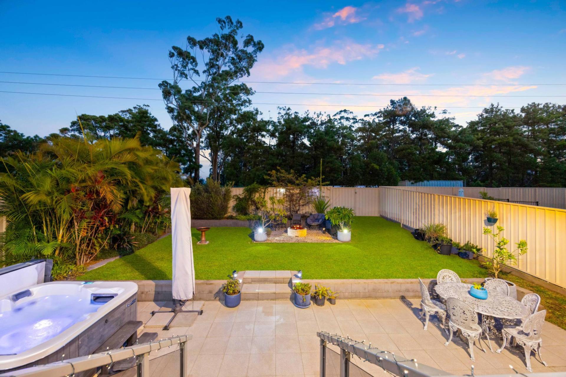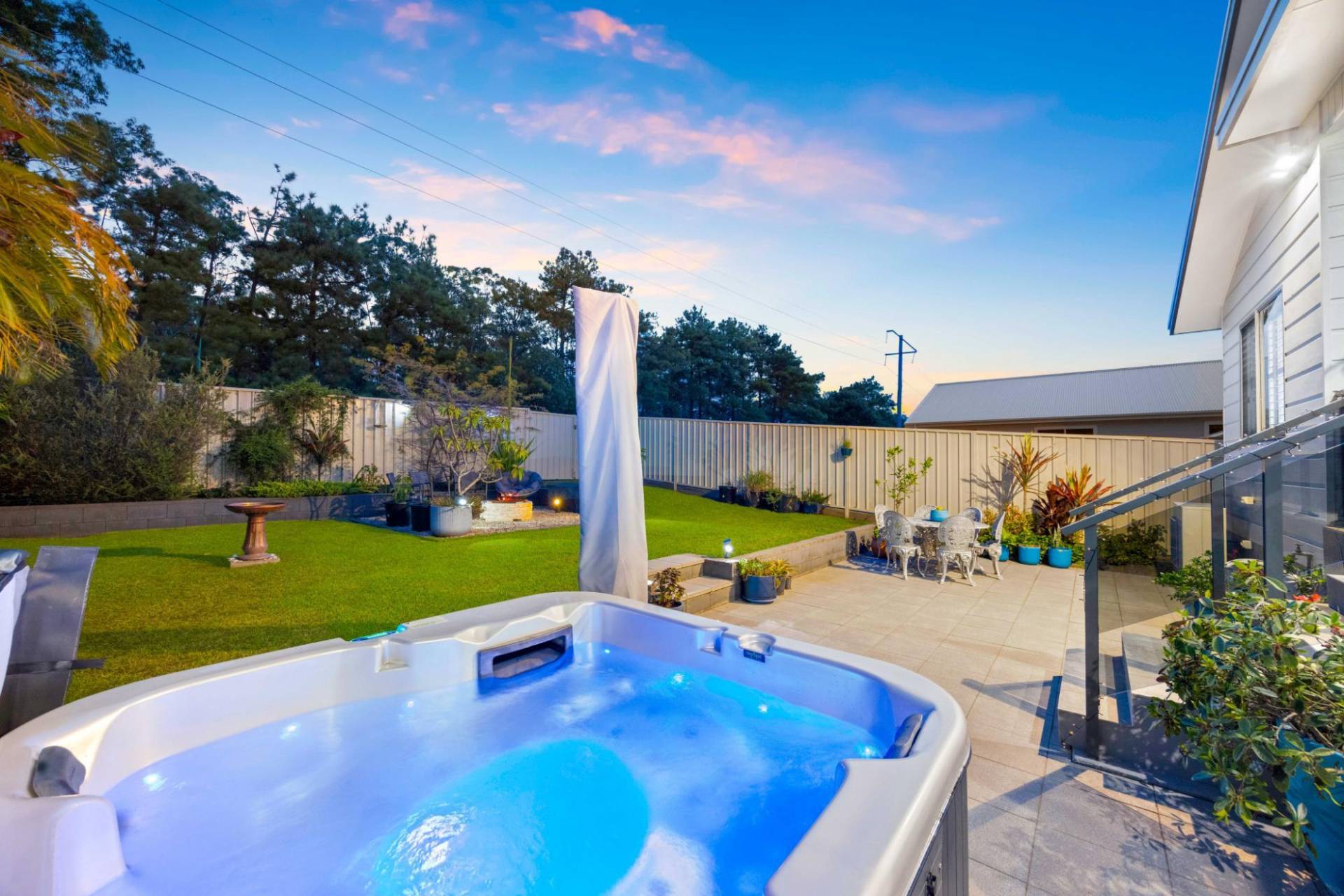 Indulge at the end of the day, while you sit back and relax in the 5 person spa, taking in the tranquil surrounds, or kick back with a beverage around the cozy firepit.