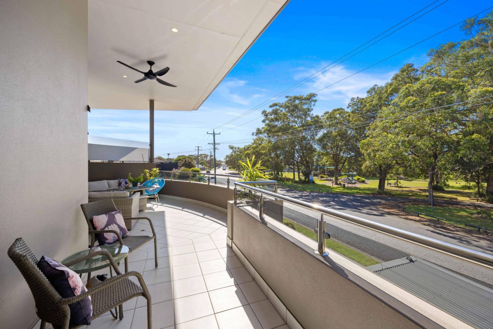 * Bi-fold doors opening to large covered balcony