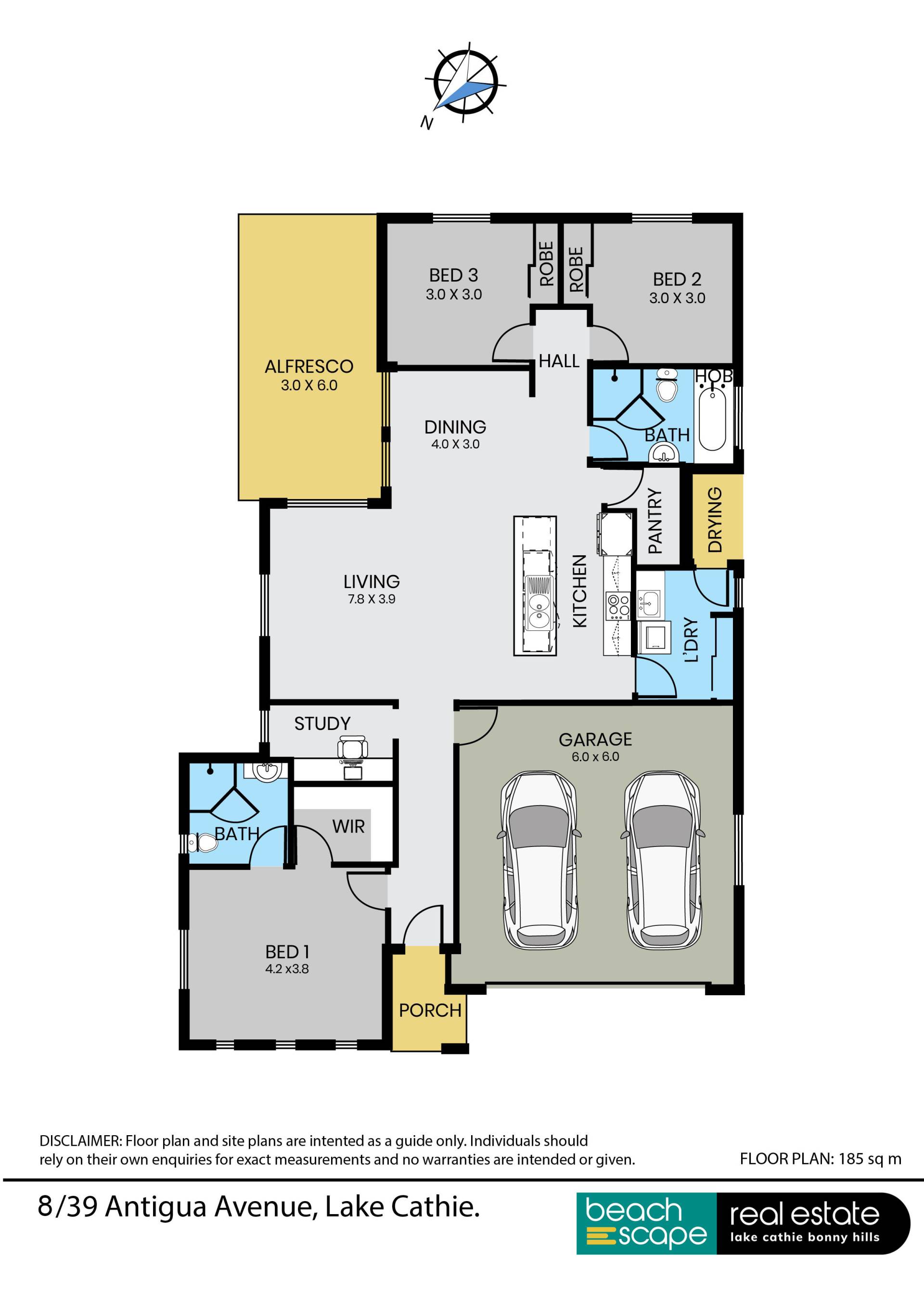 Showcasing premium inclusions throughout, with light-filled living zones that feel instantly welcoming and inviting. The thoughtfully planned layout includes three generous bedrooms, highlighted by a lavish and private master retreat, with walk-in wardrobe, elegant ensuite with floor to ceiling wall tiles and dual shower heads. While the additional bedrooms are well-proportioned and serviced by a contemporary main bathroom, complete with luxurious freestanding bath. A separate study provides the ideal work-from-home solution or alternatively can be used as a hobby room or walk-in-storeroom.