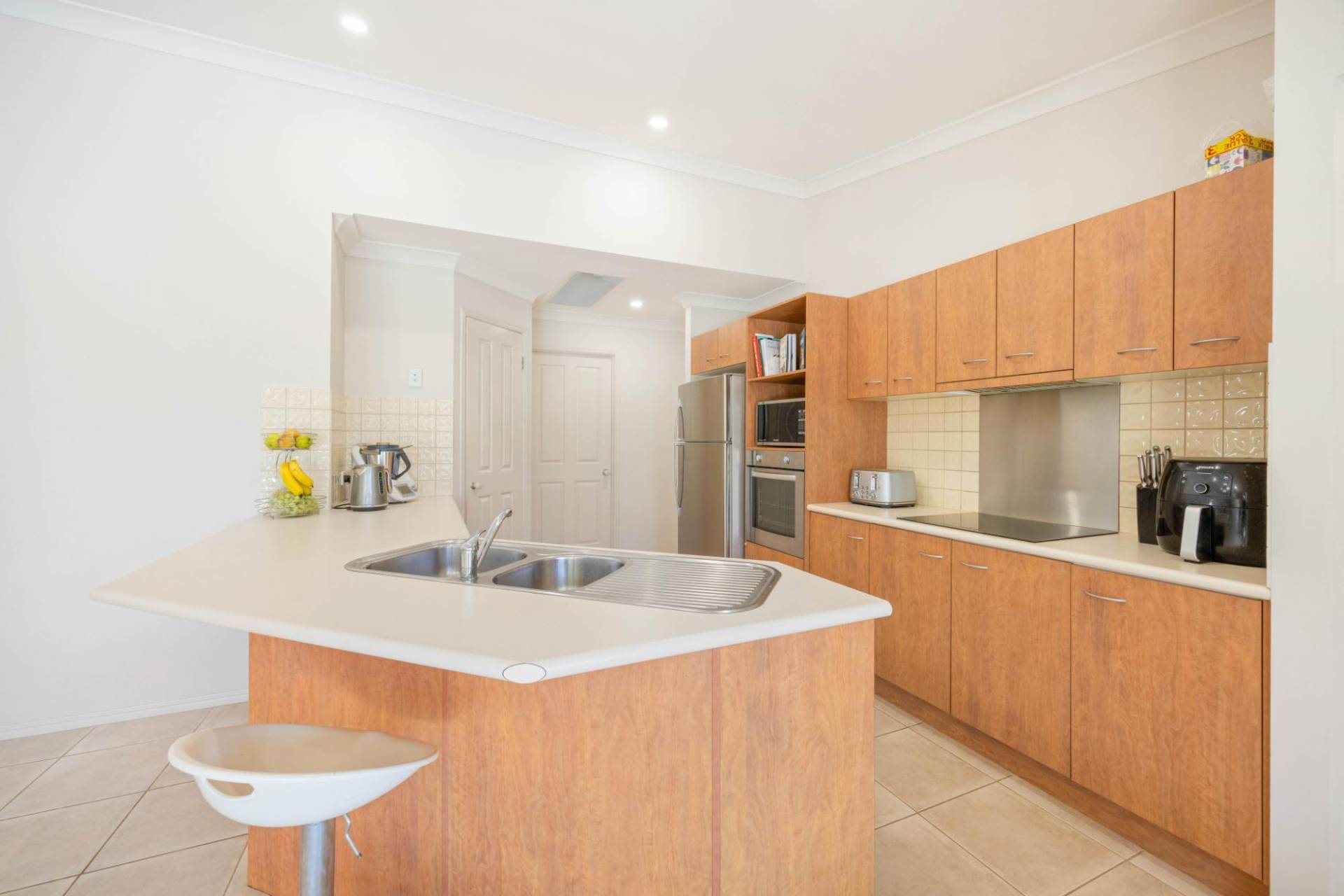 The well-appointed kitchen is perfect for everyday family living and entertaining, complete with a large corner pantry, induction cooktop, stainless steel dishwasher, and a convenient breakfast bar.