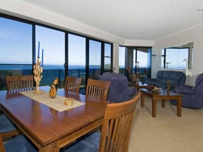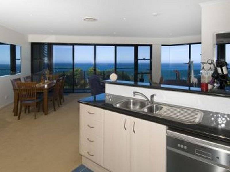Enjoy the ocean views from this quality top floor executive penthouse apartment featuring ducted air conditioning and spacious open plan kitchen/living which leads to east facing entertaining balcony. Segregated main bedroom suite includes large ensuite/spa and walk in robe. Separate office/TV with a sunny rear balcony near the other two bedrooms with main bathroom and laundry including dryer. Security complex and enclosed double garaging. Easy walk to cafes & restaurants with beach opposite.