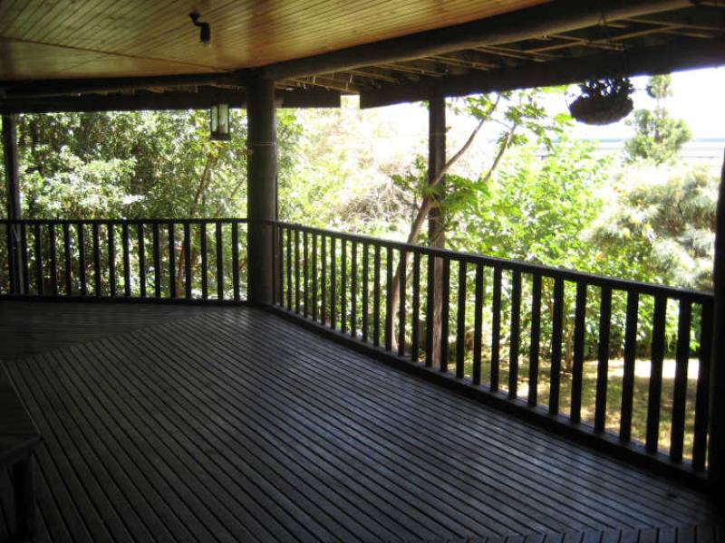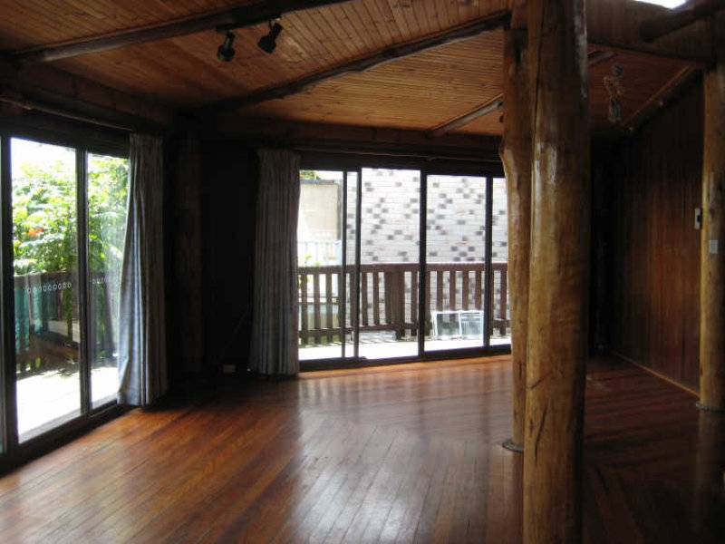 Unique timber pole style house with beach views and shady private front yard. Consists of two living areas, three bedrooms, 1.5 bathrooms, timber walls and flooring and carport under house.